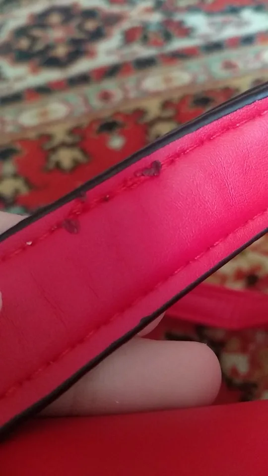 The bag is great! Thank you for the gifts. The handle slightly crumpled, you can see how the threads lit, there is a smell. But for such a price, I'm very pleased! The bag came quickly. Seller and recommend!