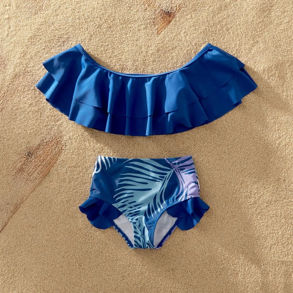 Tropical, Striped, Print Mother and Daughter Swimwear One-Piece Mommy and Child Swimsuit