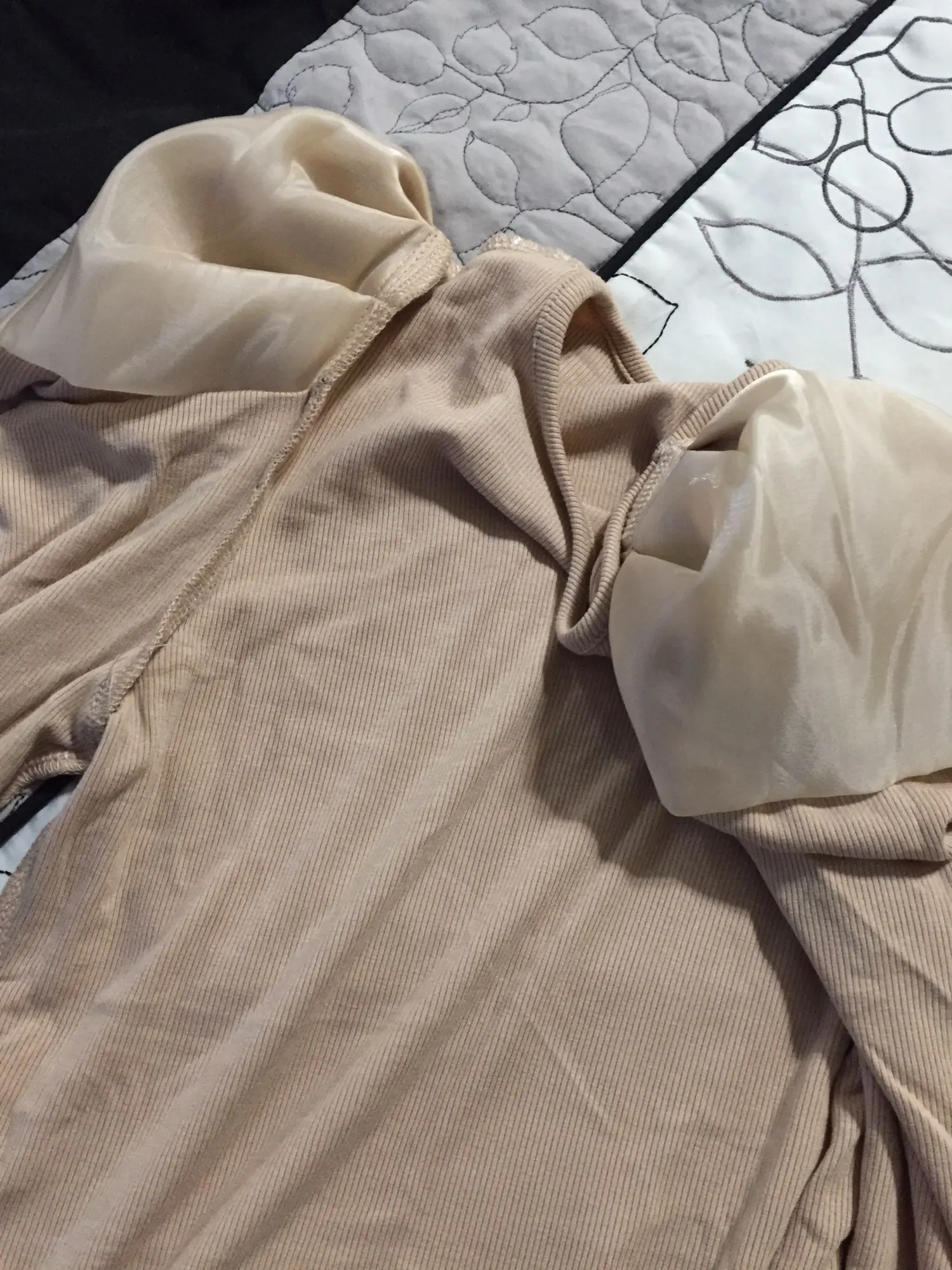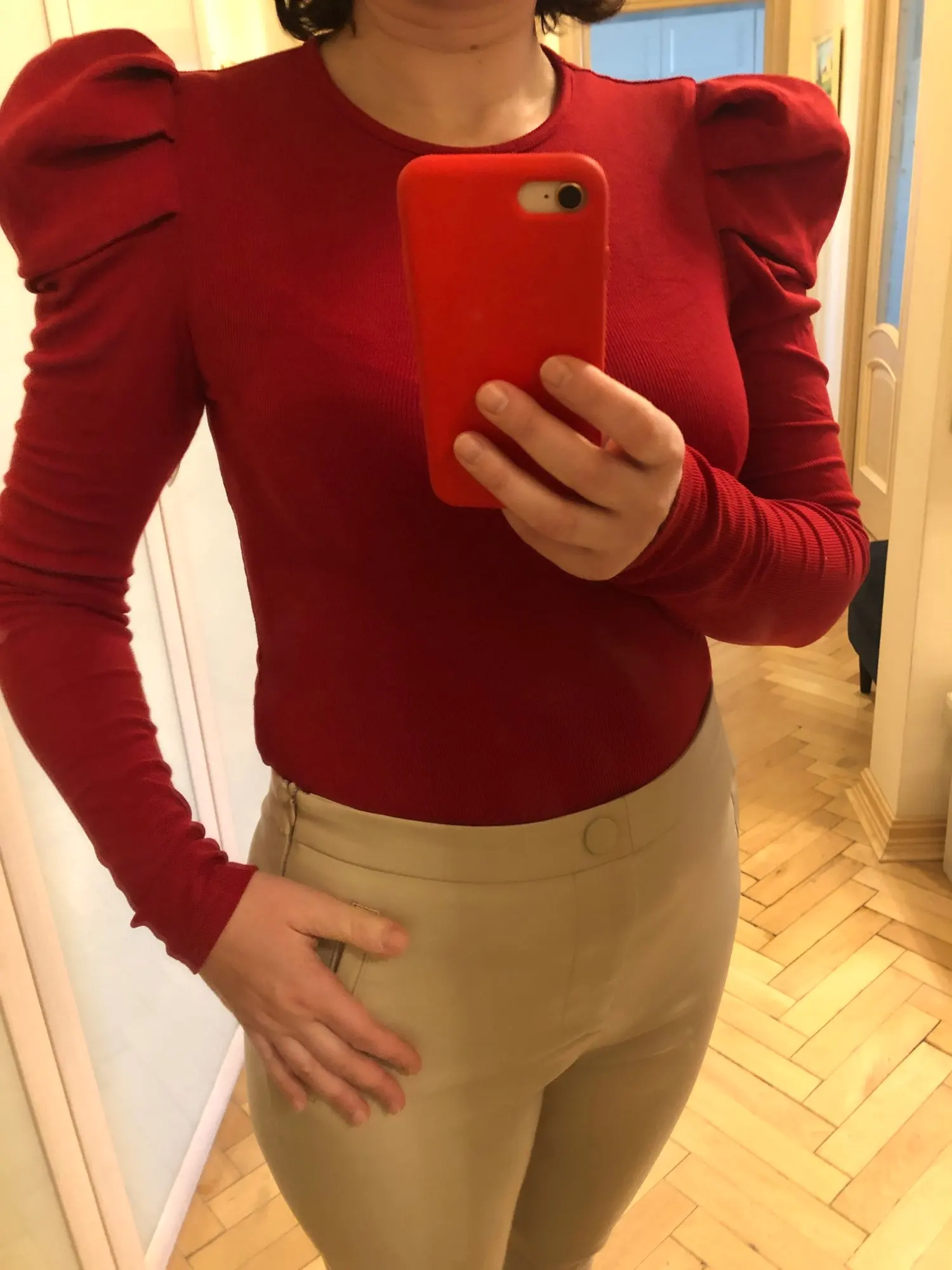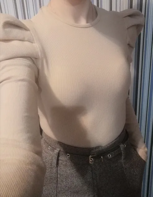 Very good body. Fabric cotton with viscose, the quality is excellent, the threads do not stick out. Photo with sleeves, see in the photo the thing is only out of the package even did not have to iron, lanterns are held at the expense of the lining (there is a photo). On the Russian 44 took M. With the growth of 161 fastened at the bottom there is a stock, viscose stretches can and 175 fastened. With the store did not communicate, the goods were sent quickly 23/11 paid and 9/12 took away at the point of issue in five (Moscow).
