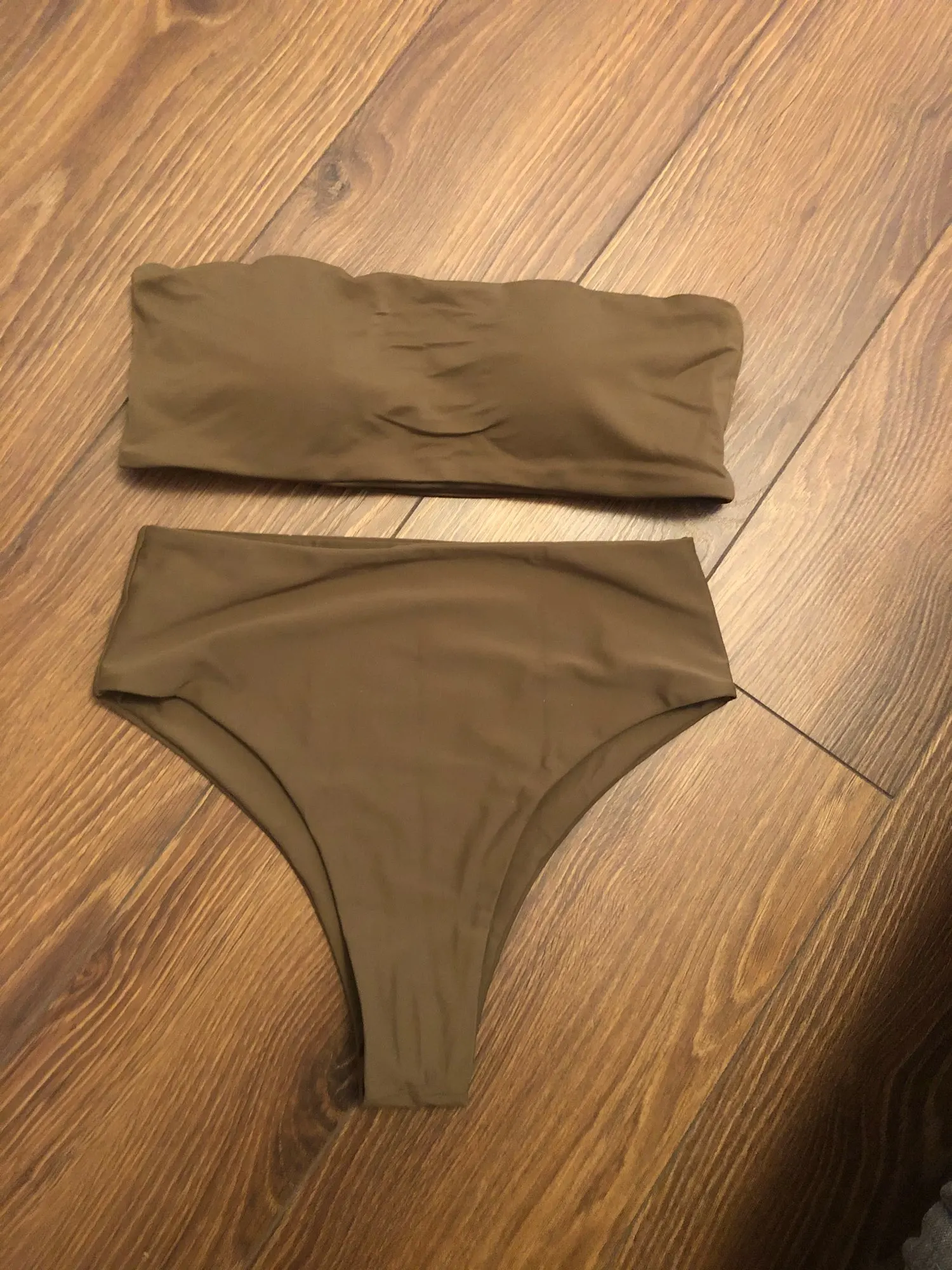 New in 2021 for Women Strapless Bikini Set. Solid Colour Padded High Waist Thong Bottoms Swimwear.
