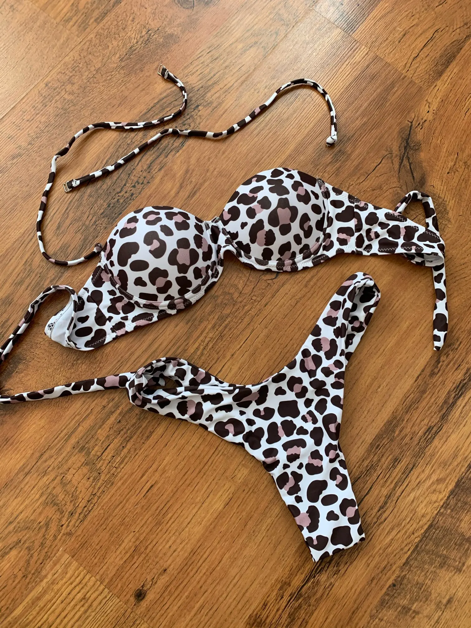 New Printed 2 piece Bikini For Women in 2021. Sexy and Stylish Padded Strapless Bikini with Thong Style Bottoms.