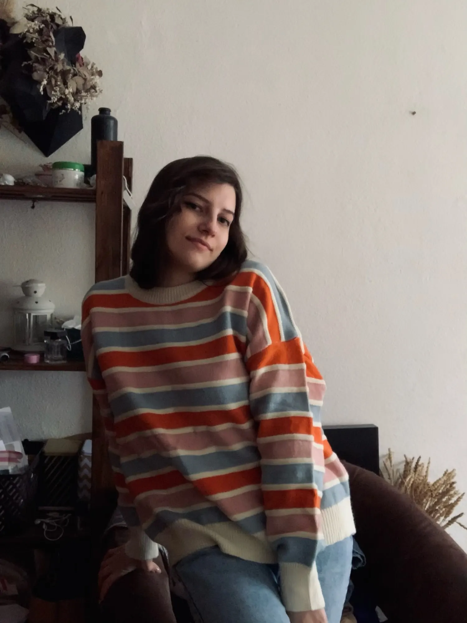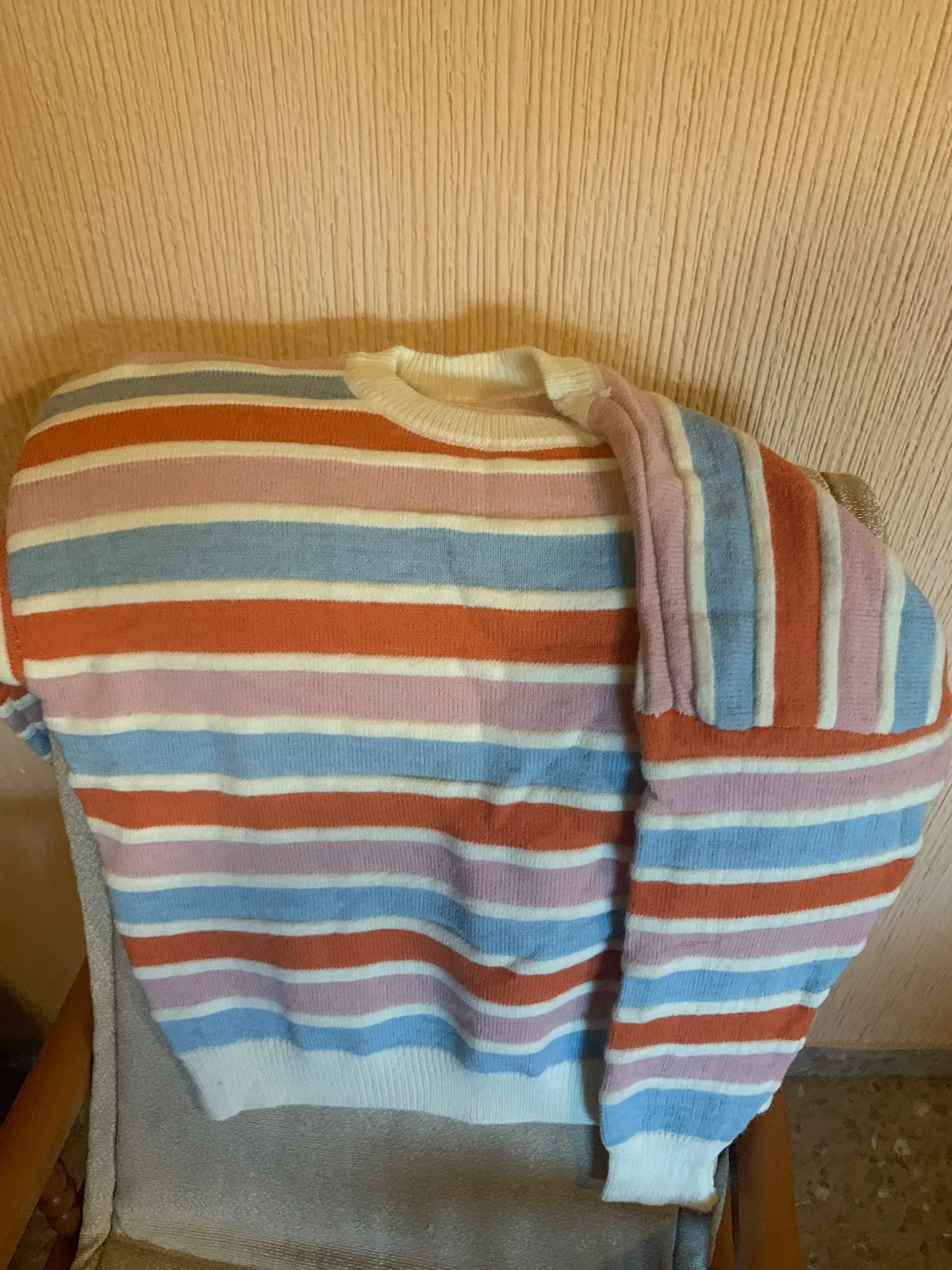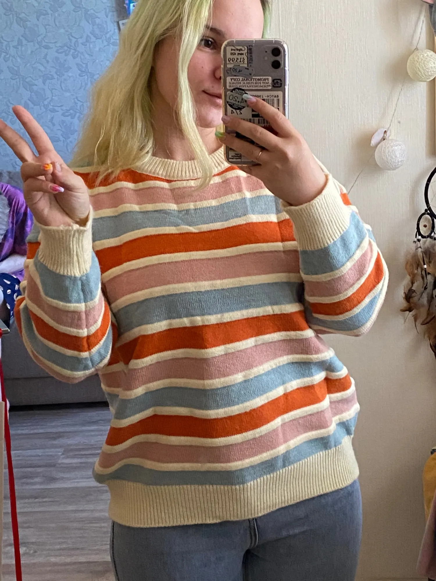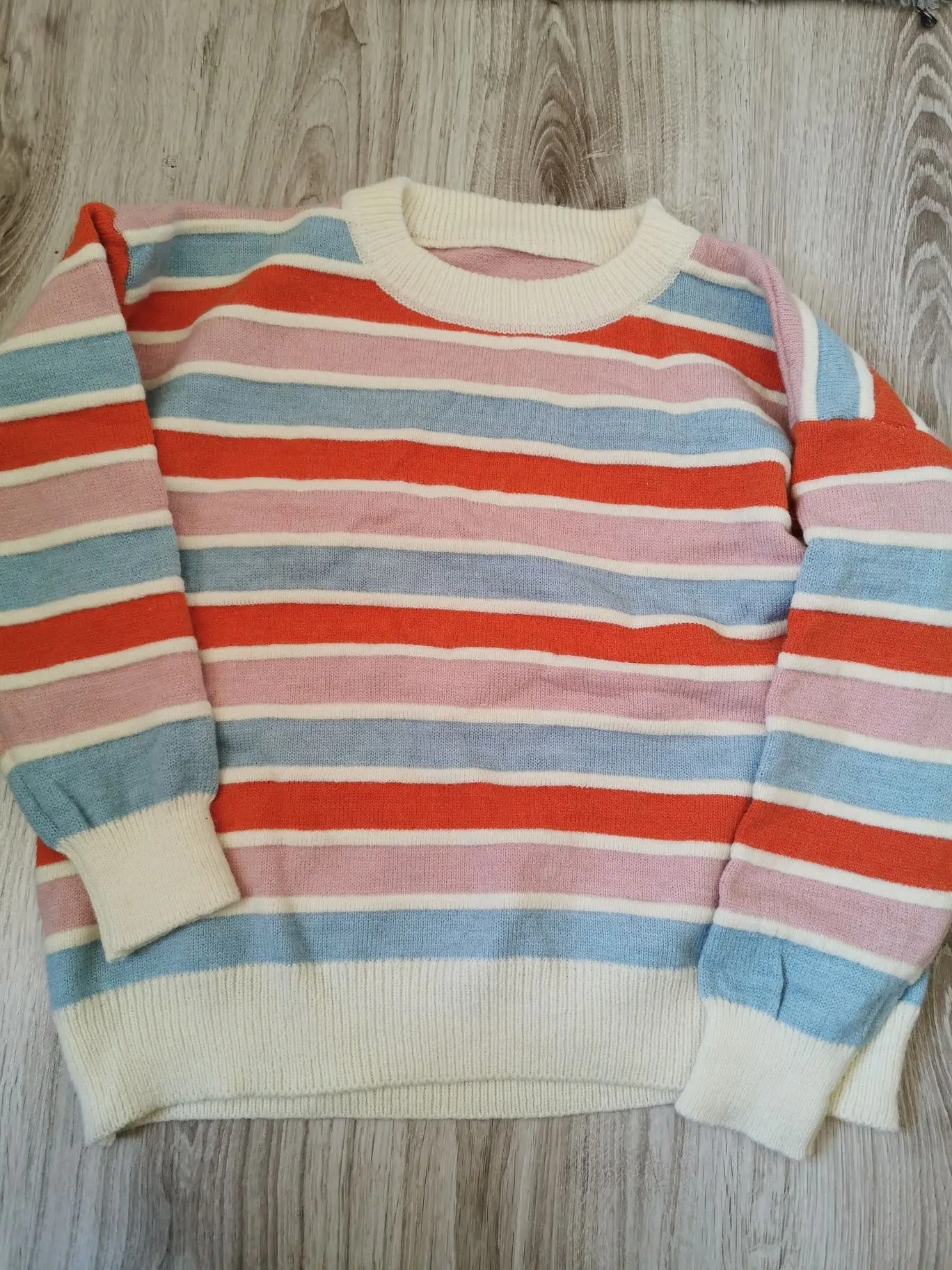 Striped Women's Sweater Autumn and Winter Tops Knitted Pullover This striped sweater is now available at a great price, grab it now! Measurement In CM Size Shoulder Chest Length Sleeve Free 63 122 63 39 Measurement In Inch Size Shoulder Chest Length Sleeve Free 24.8 48.0 24.8 15.4