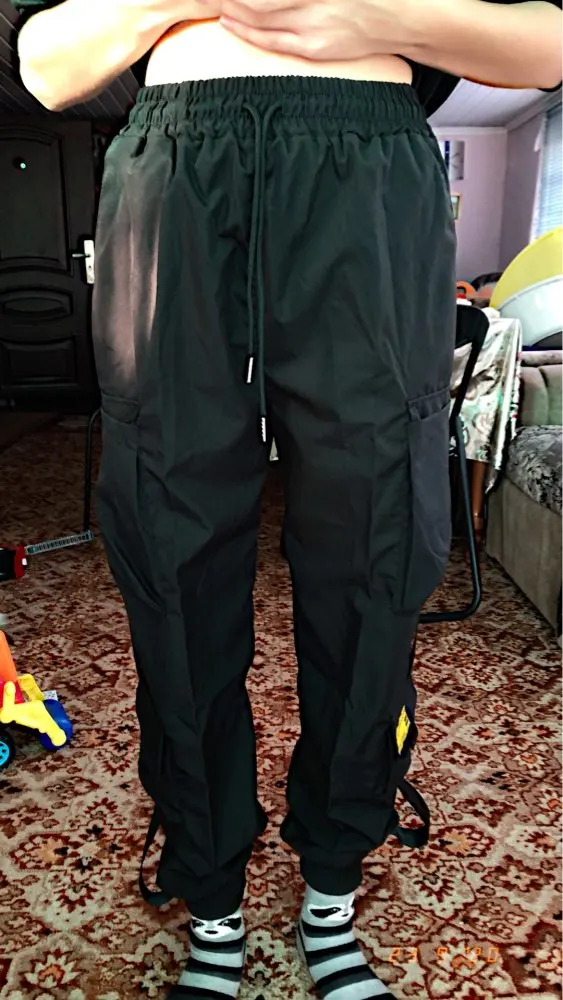 10 stars!!! Jogers are bombeznyh!!! Correspond to the measurements! The fabric is soft and very pleasant! And in the package lay a surprise! Socks! Wonderful socks! They're in the photo. Granddaughter is very happy with the purchase. We were worried that they were not wide. For nothing! Received quickly, new mail. Buy if you like sports style. You won't regret it! I definitely recommend the store!
