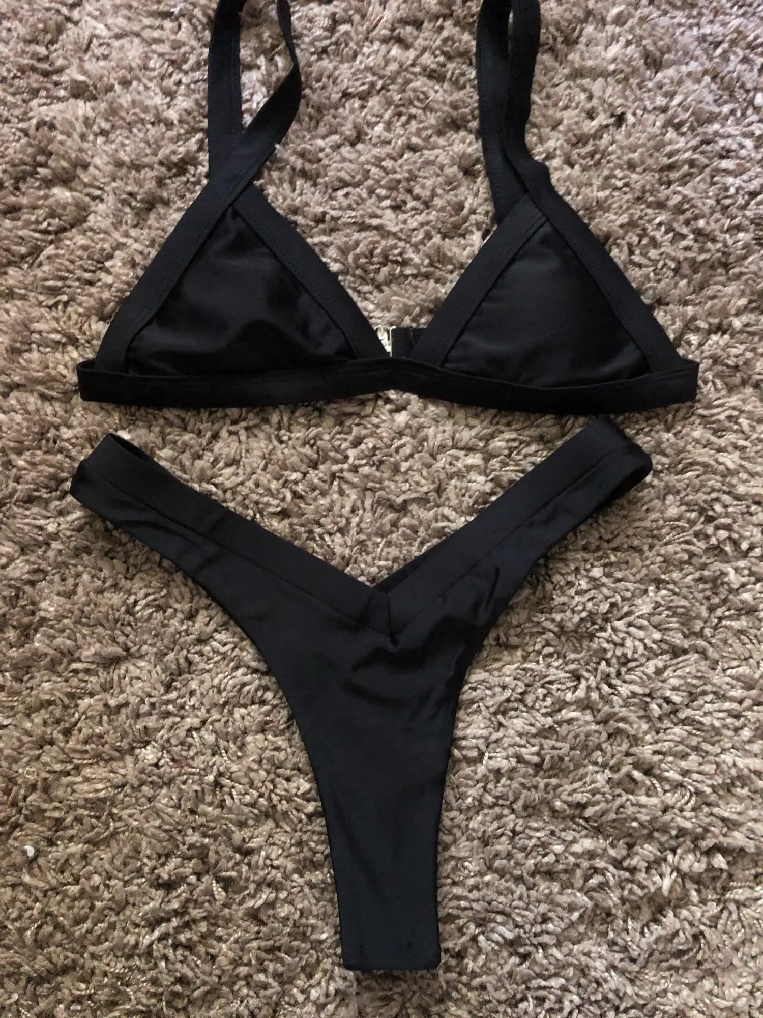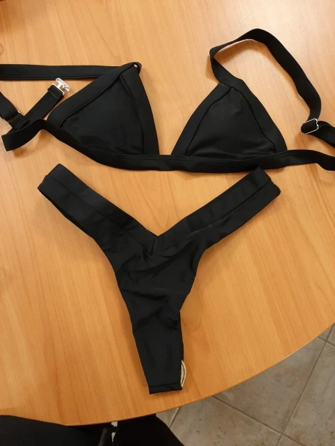 New in 2021 for Women Thick Straps Triangle Bikini Set. Solid Colour Padded Low Waist Bottoms Swimwear.