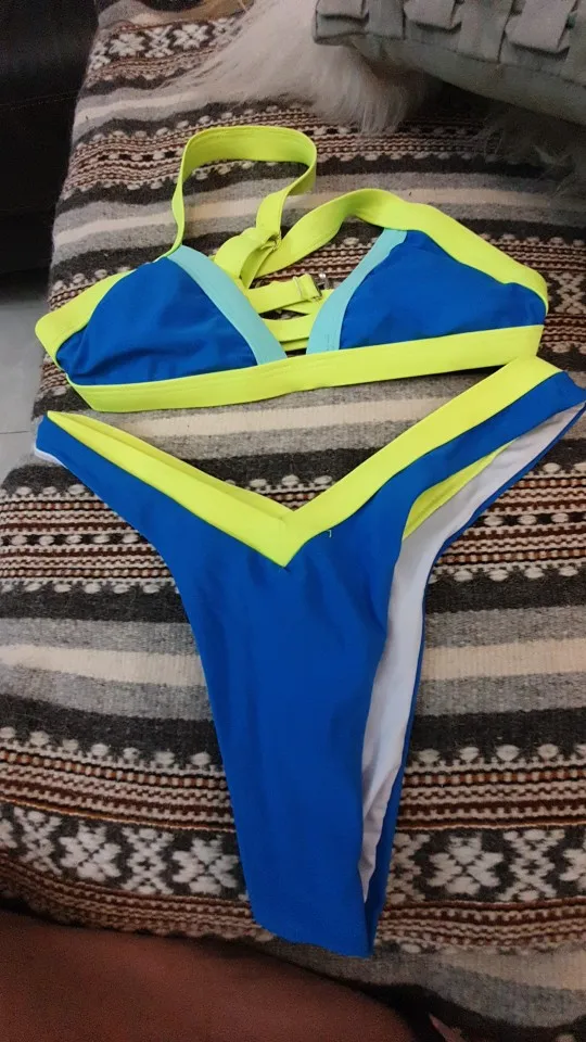 New in 2021 for Women Thick Straps Triangle Bikini Set. Solid Colour Padded Low Waist Bottoms Swimwear.