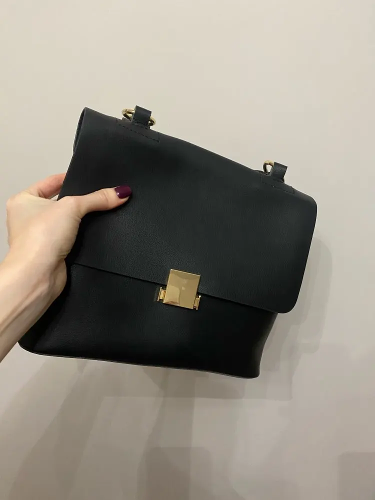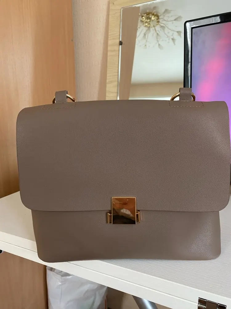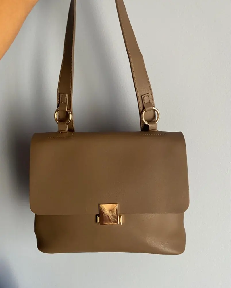 New Stylish and Versatile Shoulder bag with gold detailing. Flap and Wide Strap Medium size bag.