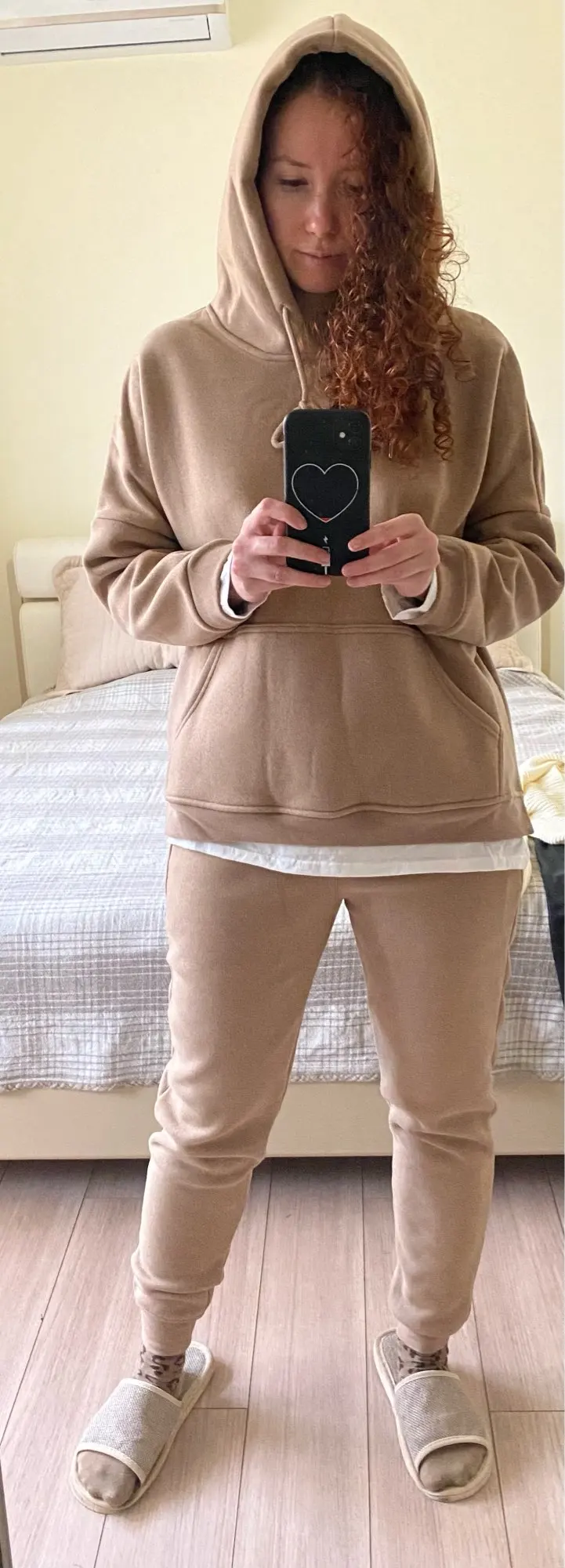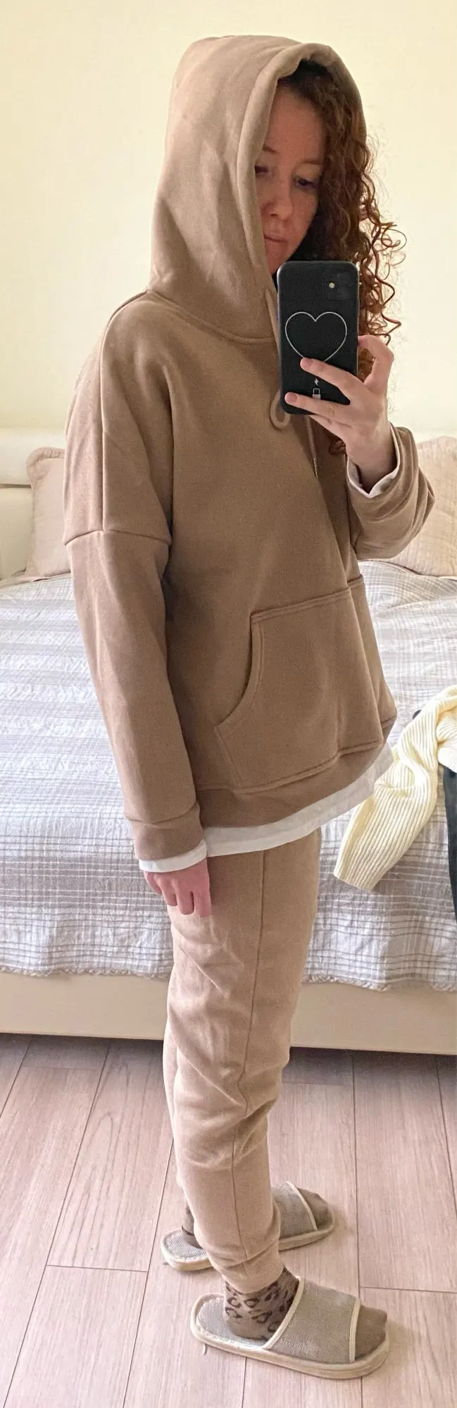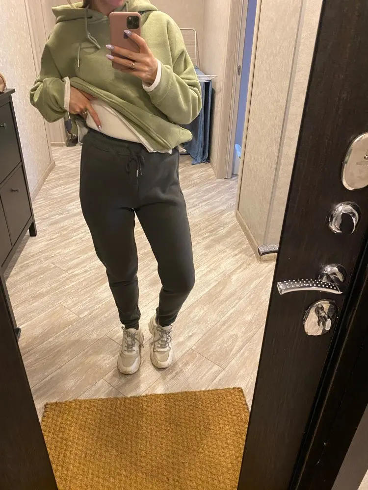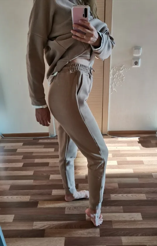 Классные штаны. Заказала размер L. На рост 171, бедра 100 и талию 70 подошли идеально. Есть запас в талии, так как резинка хорошо тянется. А вот если у вас бедра больше 100 см, то уже будет сильно в обтяг. Покупала вместе с кофтой. Оттенки отличаются, но не критично. Качество пошива отличное, мягкие, тёплые, удобные.