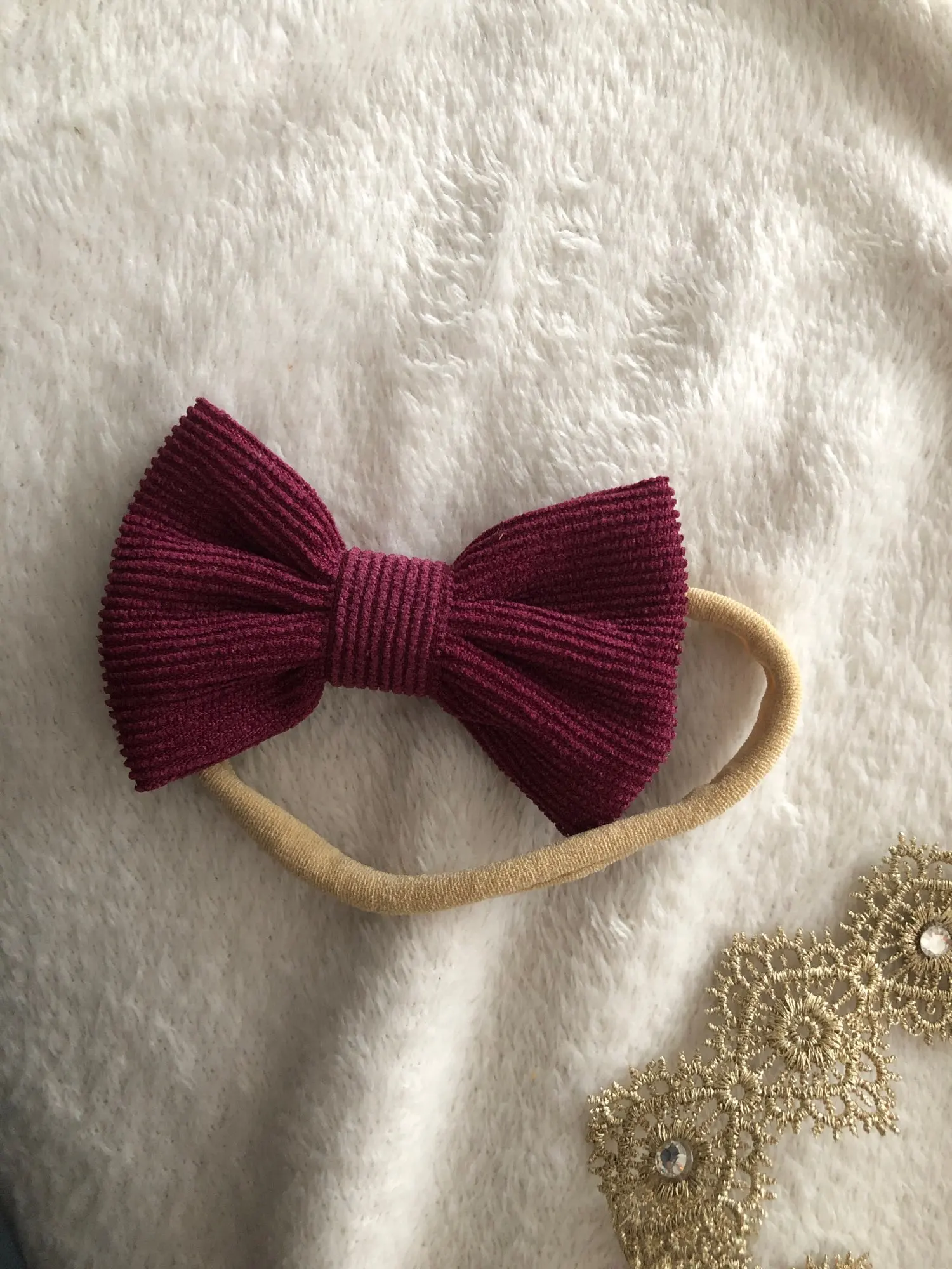 Baby Bows Headbands for Girls Nylon Soft Headbands for Chlid Corduroy Elastic Soft Headwear for Newborn Photo Props, Stretchy Baby Hair Accessories