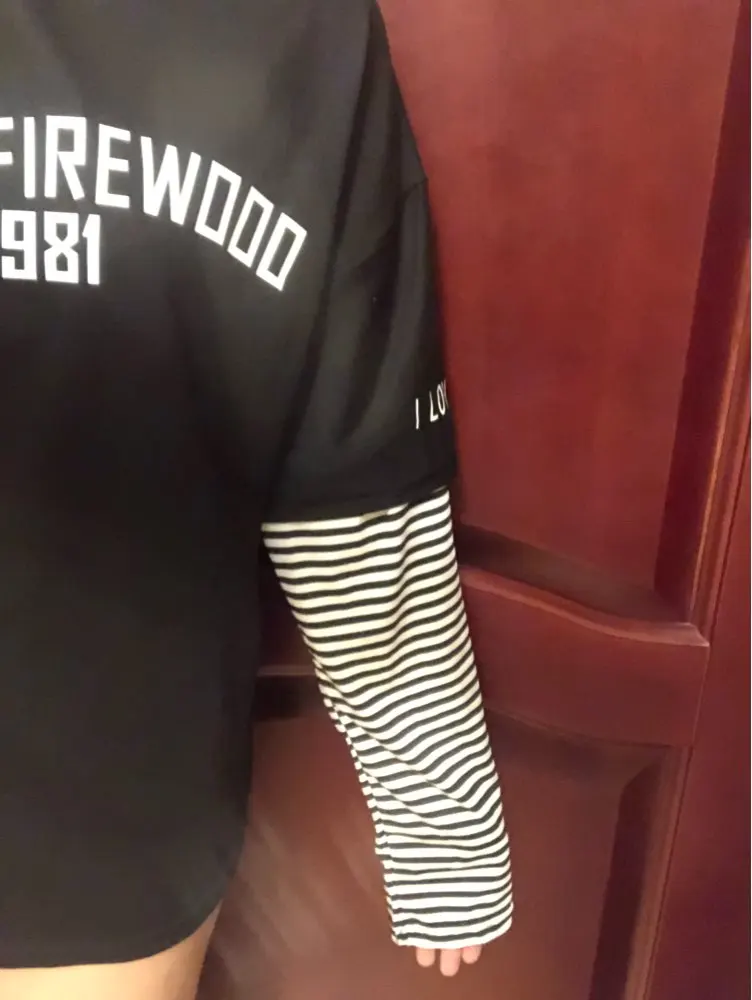 Teen's Classy Hip Hop Style Striped Sleeve T-shirt