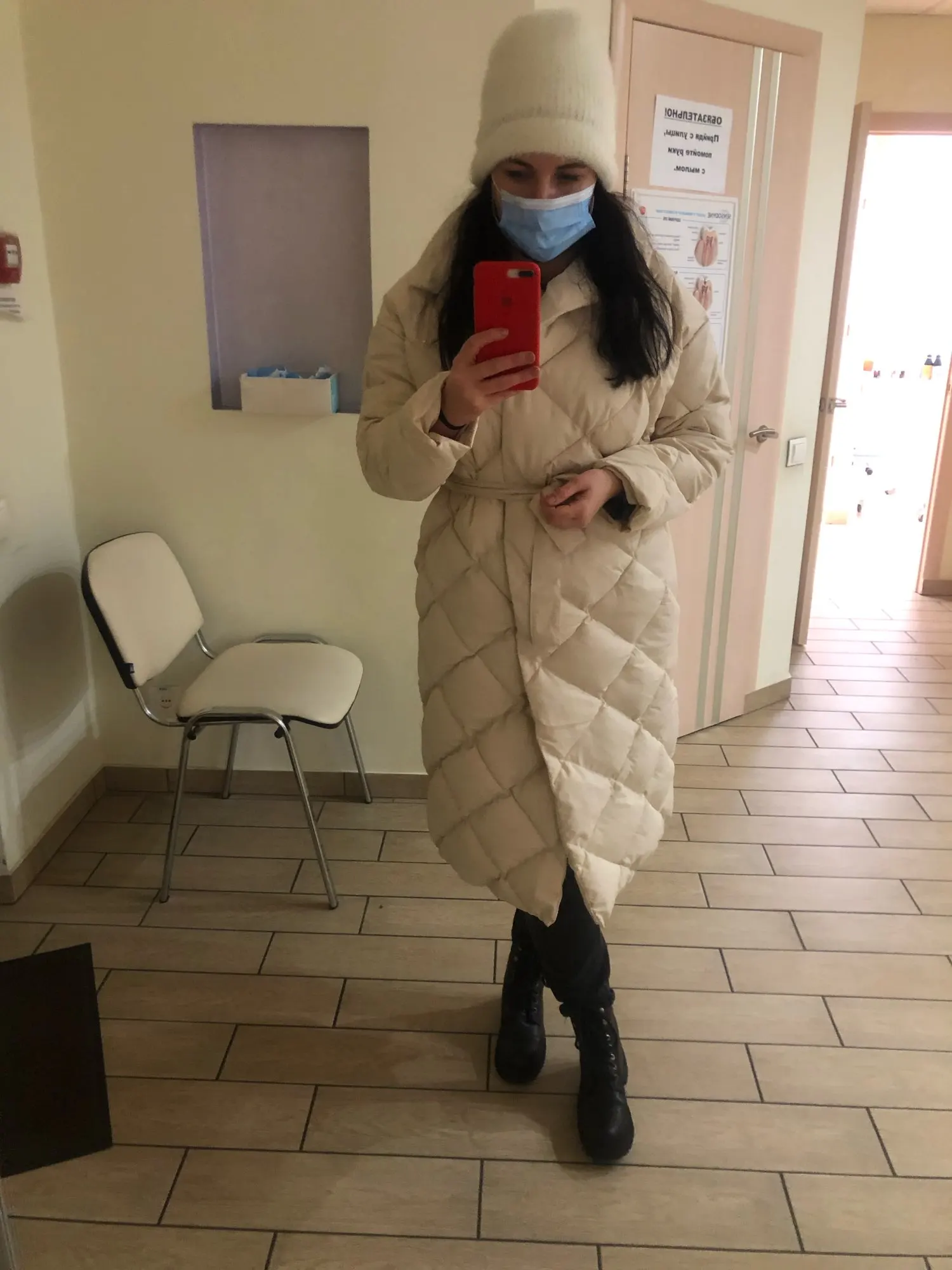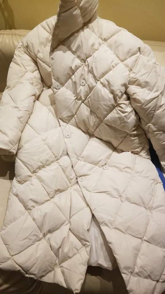The coat is just super! Long, light, warm, like an air blanket)) Looks chic and without a belt with sneakers and hoodies. With a belt looks great in combination with narrow trousers and massive shoes. Universal: both classic and sports)) For such a cost-it's just a godsend. About the size. On the growth of 170 parameters 88-67-96 came just fine! It was an oversize. Sleeve length below wrist!! Just perfect. The collar can be slightly raised, it looks quite different. Filler-not down/feather, artificial some. Stitched everything is very good. Delivery to Moscow-seven days!