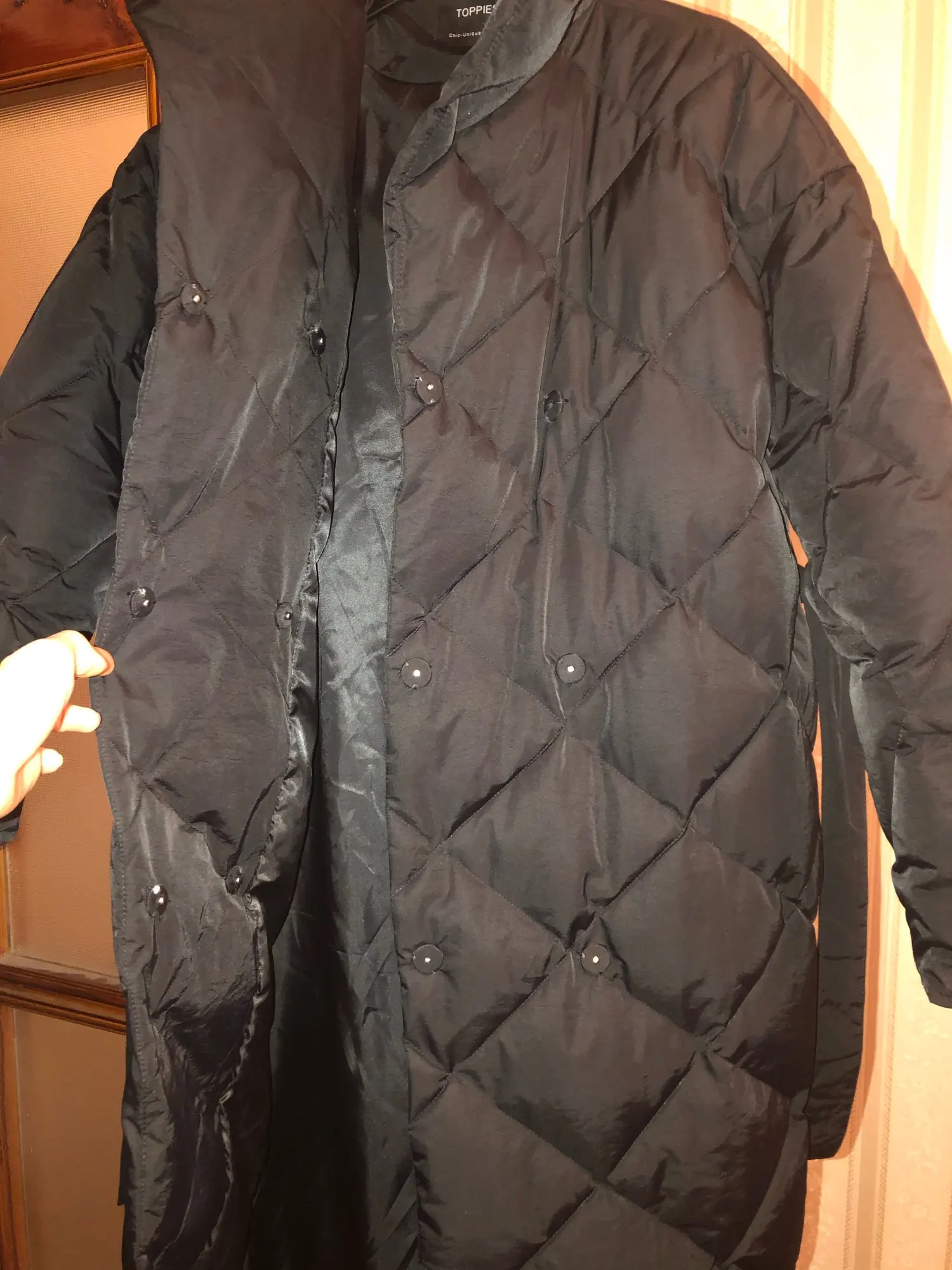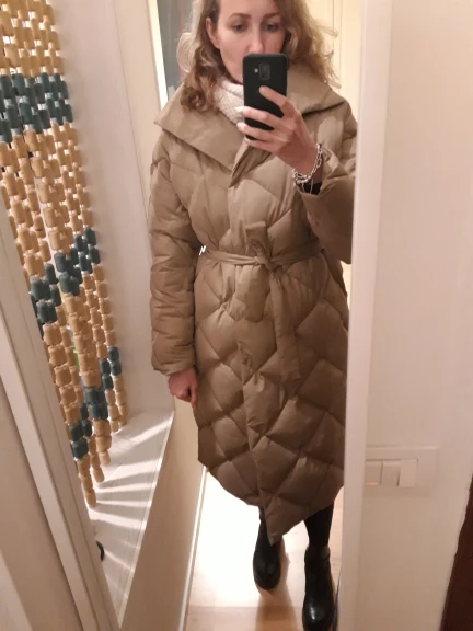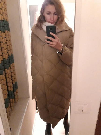 Ordered on the recommendation of the blogger irilook, did not regret it! Down jacket and really cool, so many compliments already received! I have enough filler in the collar, the belt is even. Yes, pockets, still, I would like not in the seams, not very convenient. I did not wash it yet, I do not know how it will behave. According to my feelings, to-10 will be excellent. Recommend!