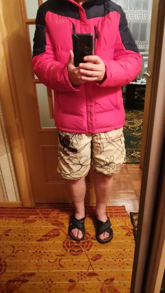10 days delivery. Quality worthy. Jacket for a warm winter. In the photo, the hood is unfastened, the hood with a zipper is neat. Ordered XXL for height 180, weight 85, chest girth 110, shoulders 48, hips 105. She sat tight, on a thin shirt. Sleeves are not short. My husband liked it.