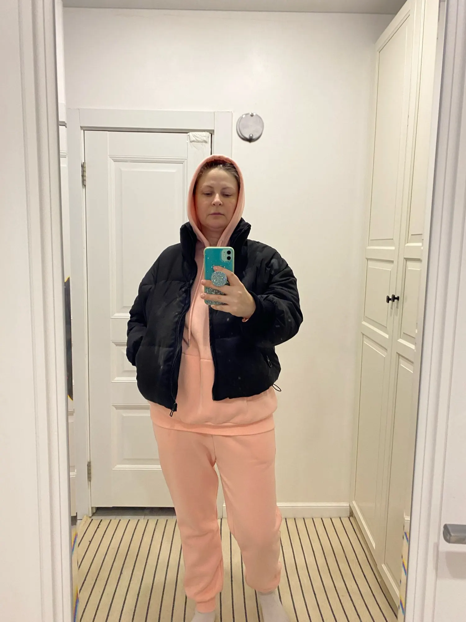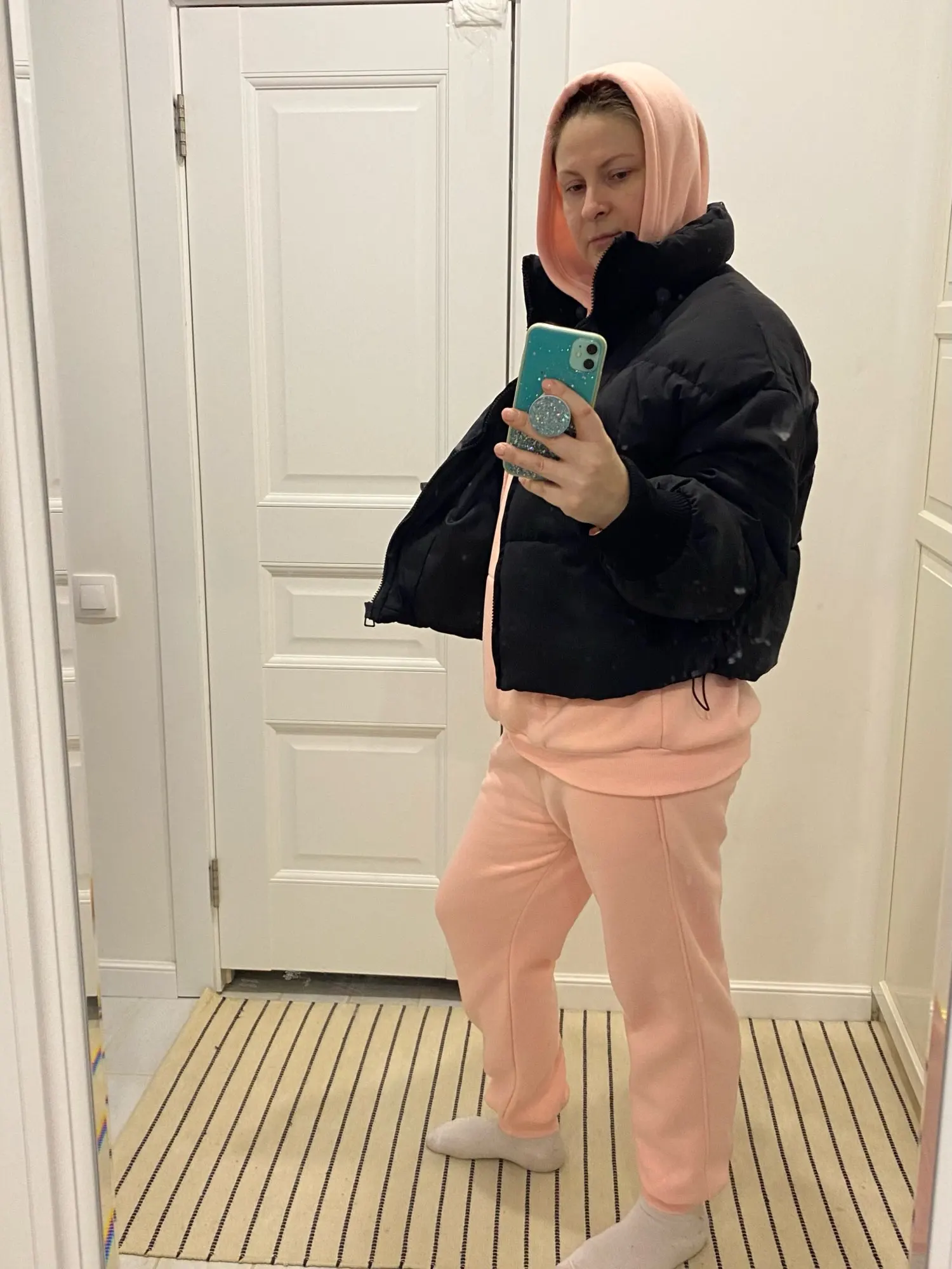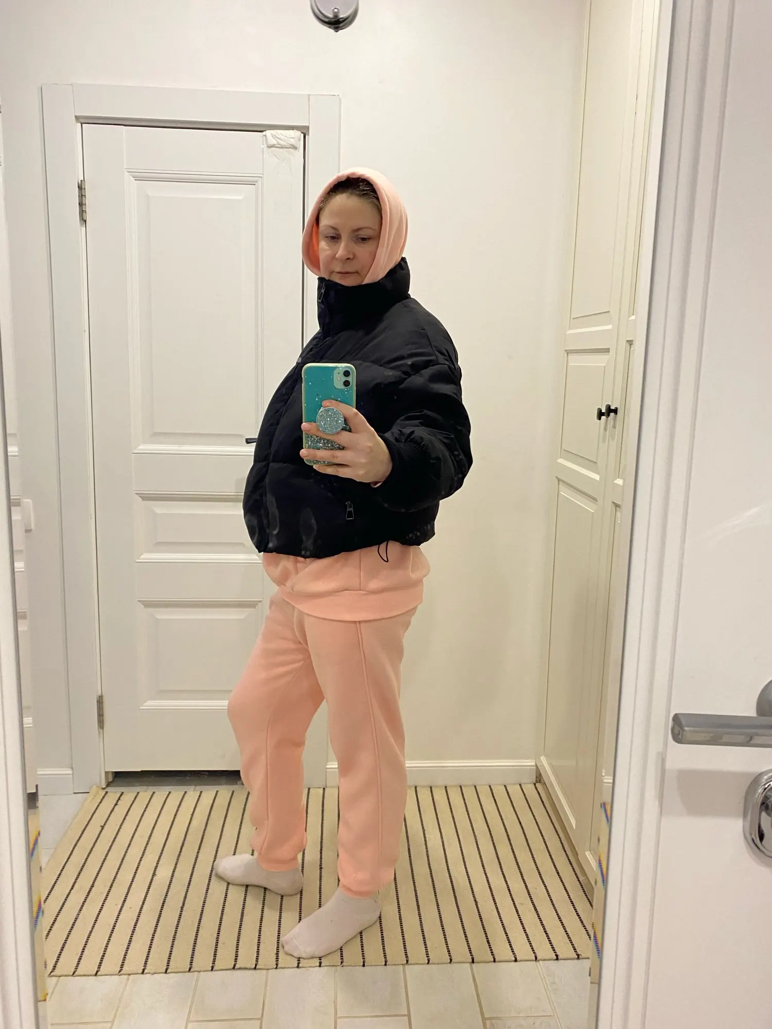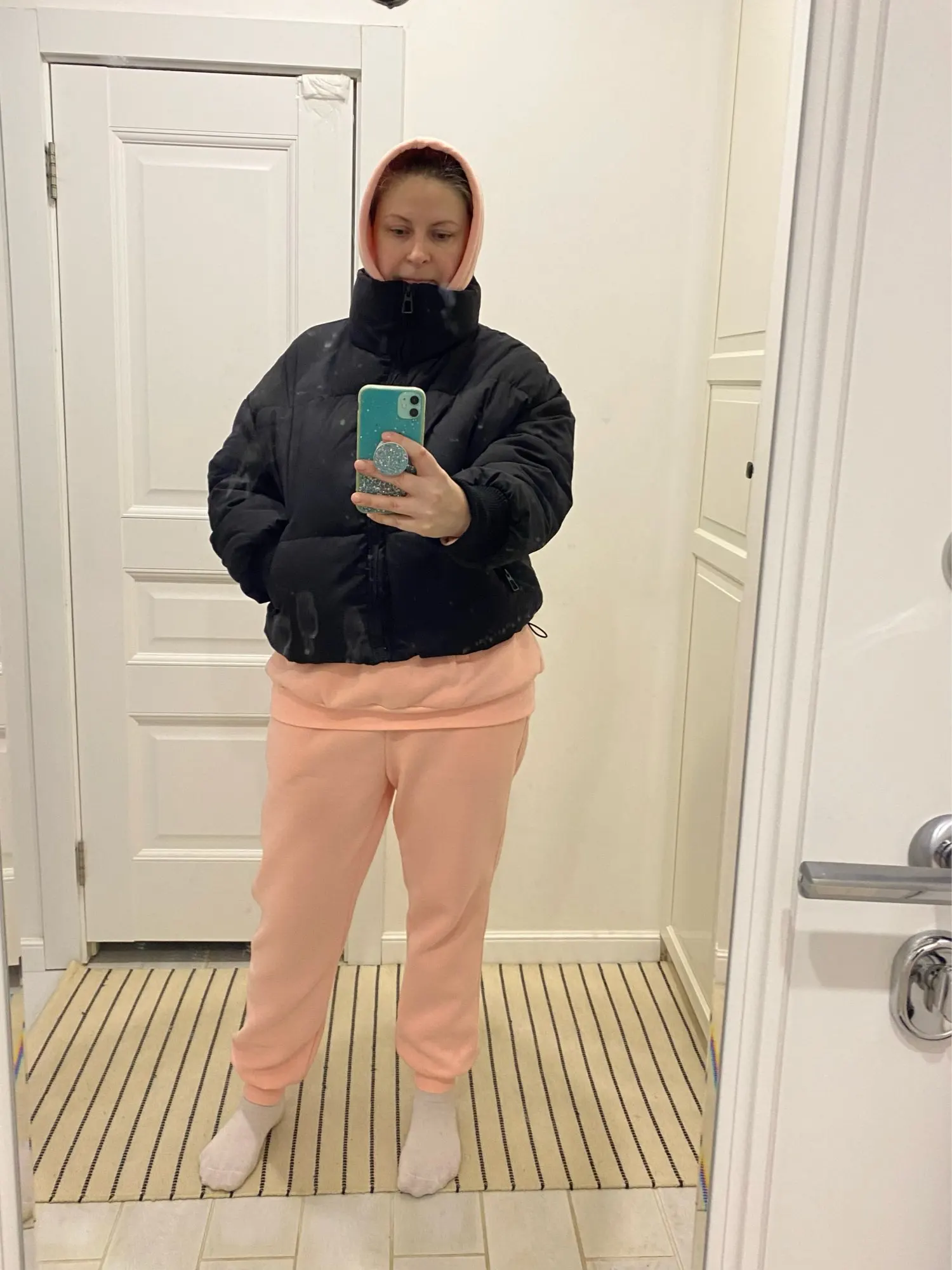 The jacket is very high quality, but strongly oversize, it is really necessary to get used, but since I'm in a position, for 8 months, especially even the abdomen in it is not visible