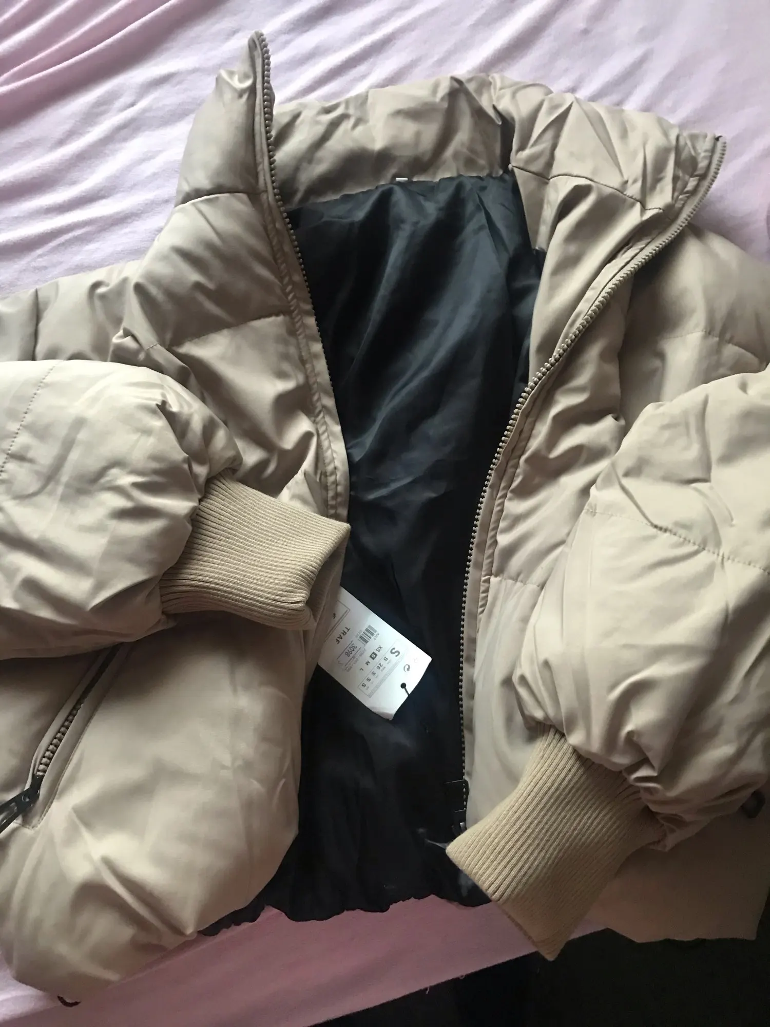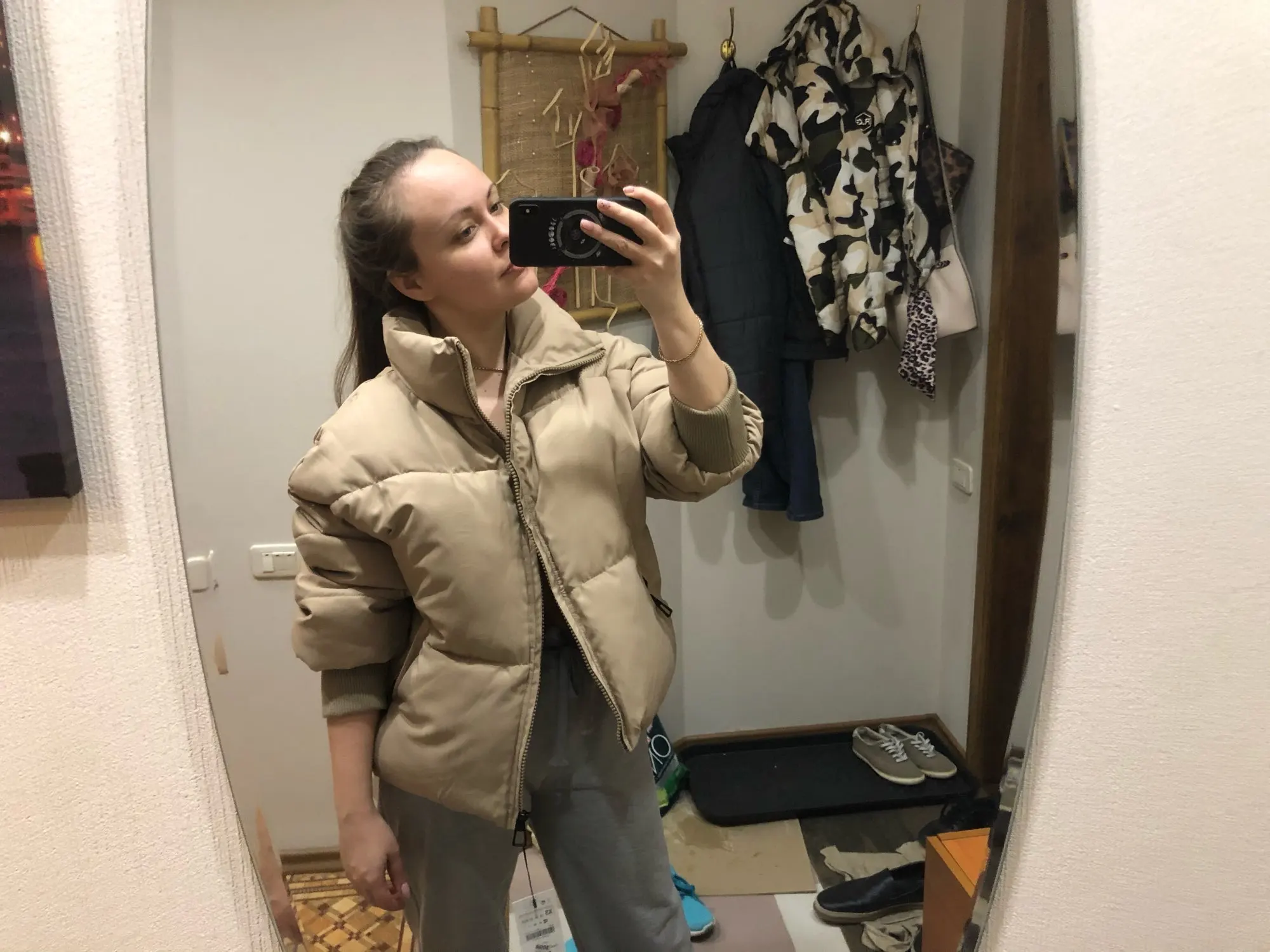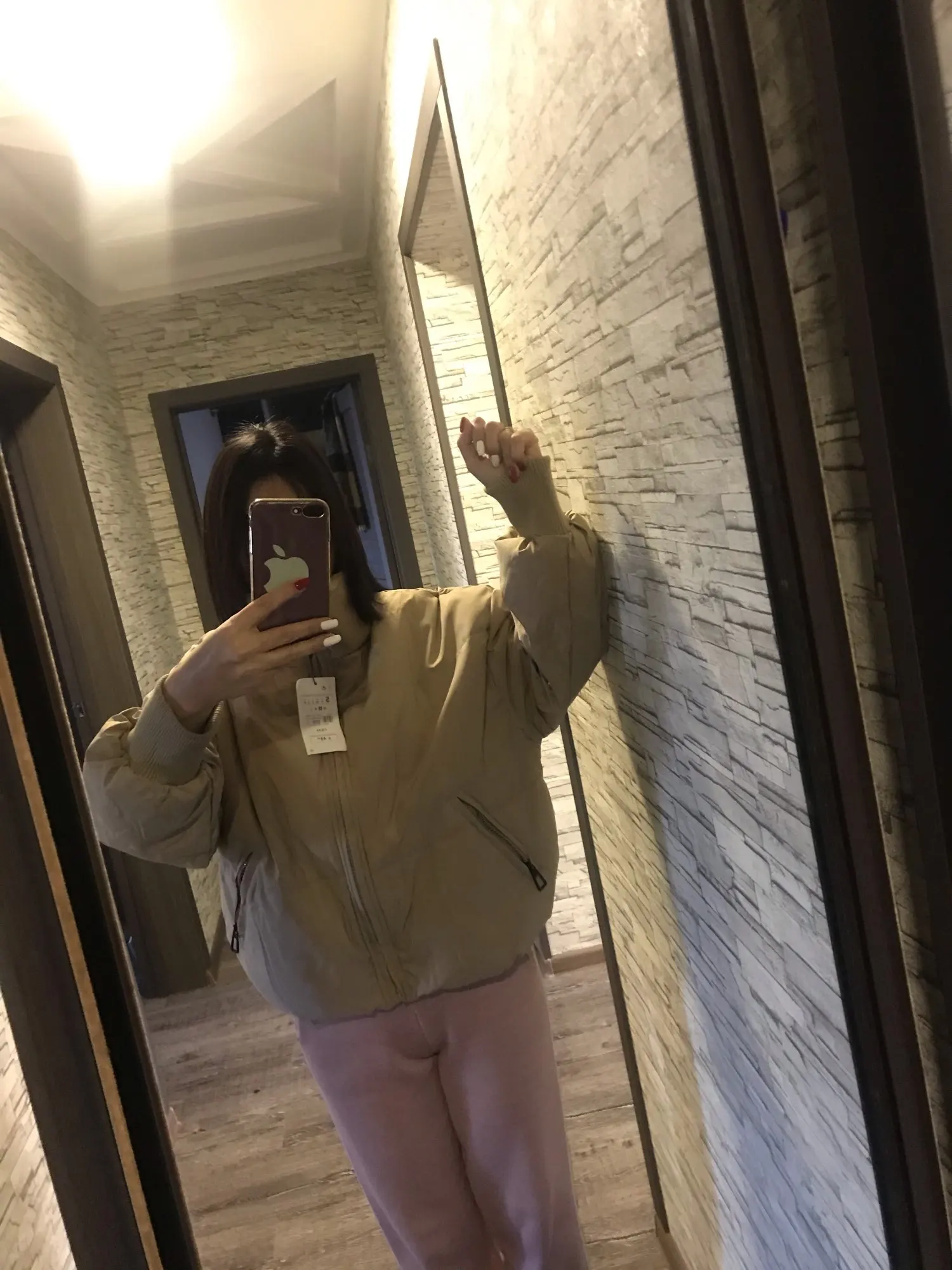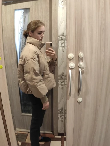 Jacket-norms, very large, I wear outerwear size M/L, based on the reviews took Xs, in fact it's "SM", on the Lebe size Mex 24. In the fabrics I do not understand, I look matte, it's not slippery to the touch, if rubbed-rustles. The color is dirty than in the store's photo, flesh with a light tint in green, like the skin of the eye after a three-hour sleep Lightning is reluctant to fastens, not critical. It looks funny in the profile, but there are puffs to adjust this question. Under the jacket, you can safely put on a sweater/sweatshirt and in this form carry until the moment when the feet begin to freeze. Does not smell, tag for Zaru, traf. Quality is also like Zara. Judging by the label, you can wash in a machine at forty degrees, iron. I did not communicate with the seller. She arrived 12 days before perm.