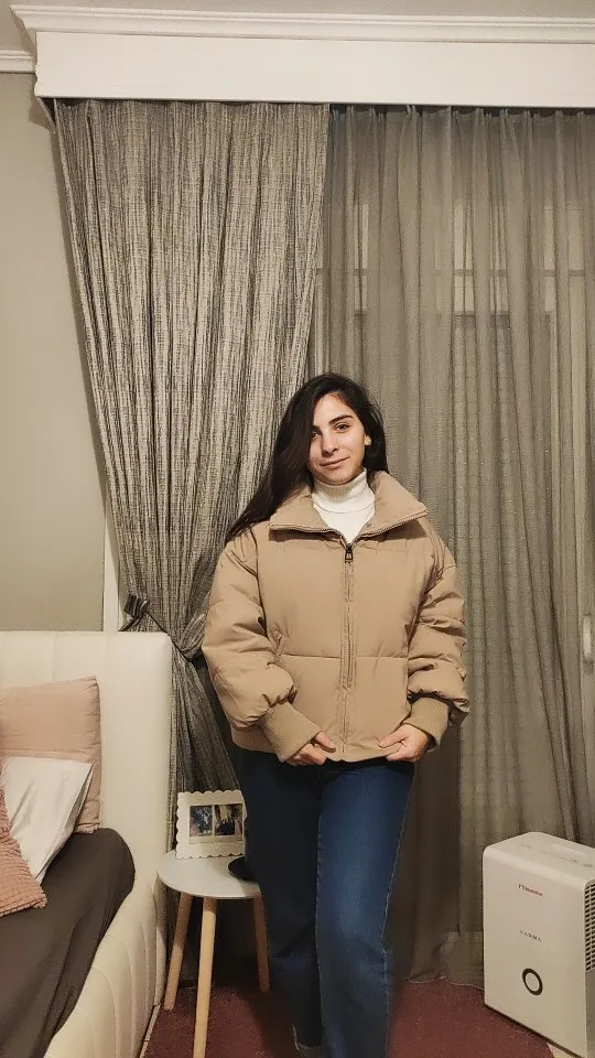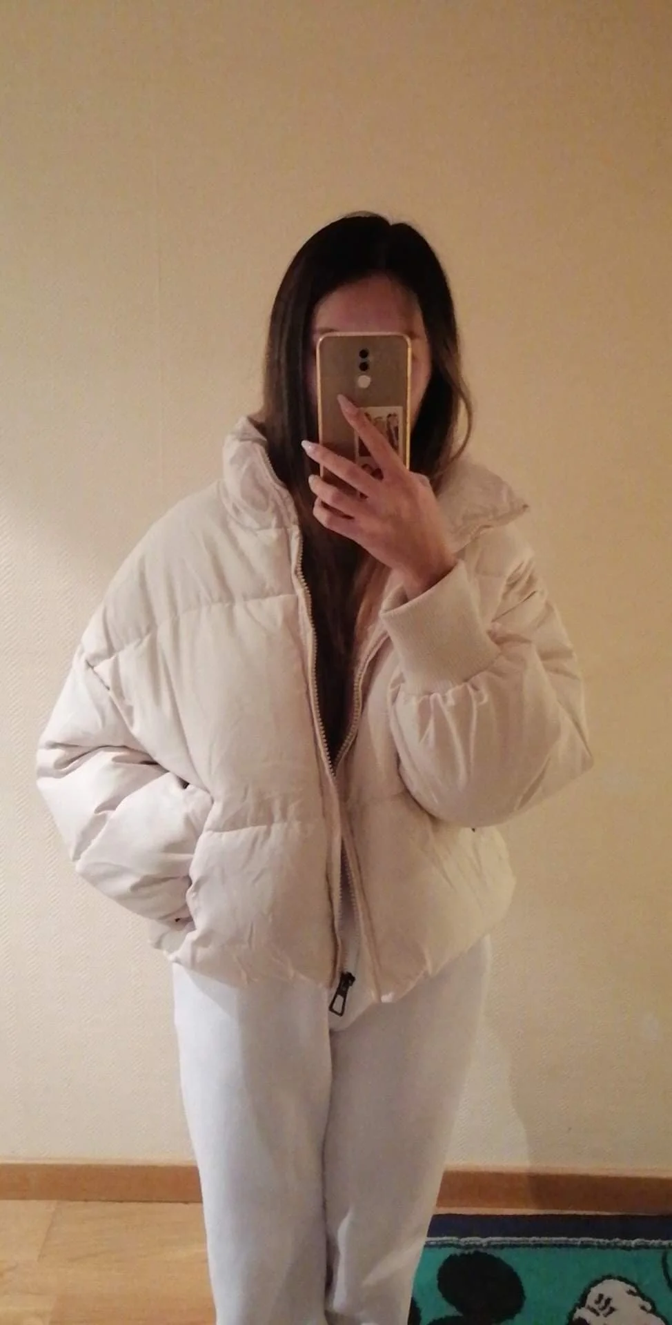 I am so so happy with this puffer jacket, the quality is so good and it feels warm ! Also the Ivory color looks much more better in real. For such a good price, I highly recommend ! I like wearing oversize clothes and I am normally a S/EU36 for a 168cm height and I took an S, it is still oversize on me !