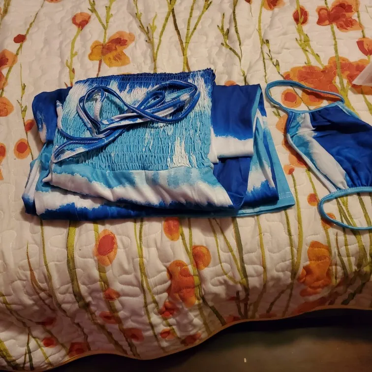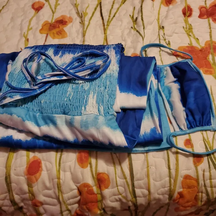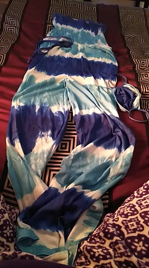 New Tie Dye Wide Leg Pants and Strapless Top Jumpsuit for Women in 2021. Stylish and Sexy Blue Coloured Overalls.
