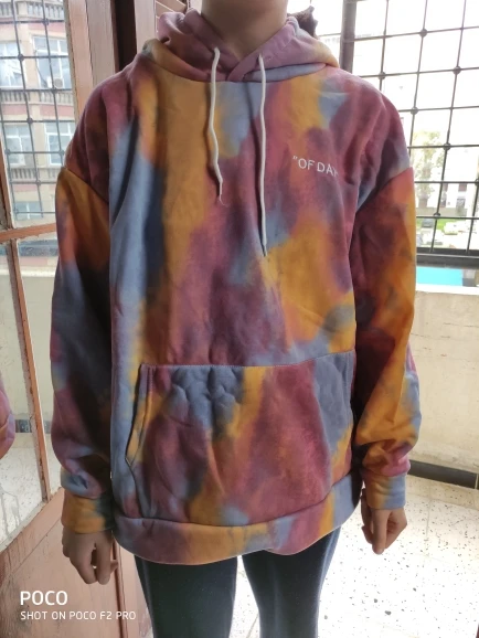 The sweatshirt is excellent, the size approached perfectly. Took 2XL. There is a small smell, but after washing I think it will disappear. It came quickly, in a month. The store put two hair bands as a gift. Everyone is very pleased, I will definitely buy more.