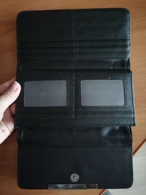 The order took 1 month. Quality is good, odorless. Very large wallet, for a large bag.