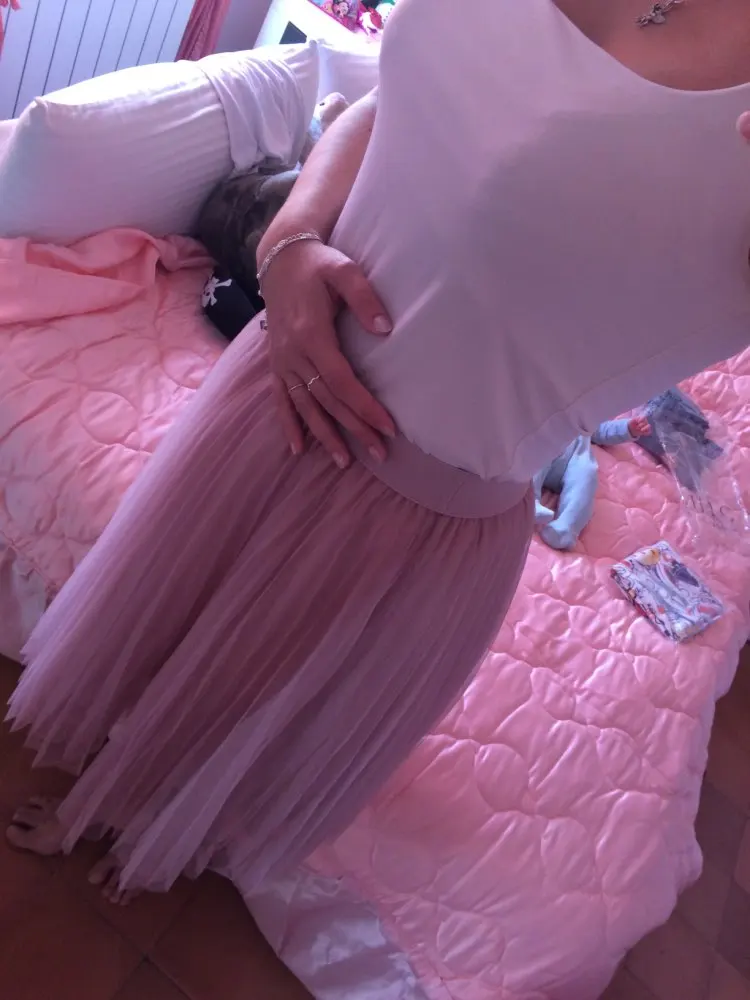 The skirt is very delicate color... Dusty Rose)) the mesh is small and from this skirt looks very high quality and expensive. Bottom lining, it is made of elastic material. I really liked the product. I feel like a gentle marshmallow! After childbirth perfectly hides the shortcomings of the figure in the abdomen. I recommend!
