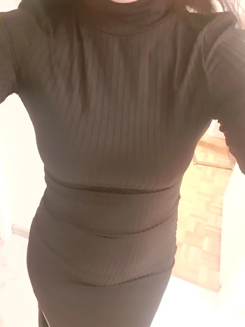 Delivery is very fast. The quality of the dress is good. Or rather synthetics are pleasant, soft to the body. It stretches well. On the growth of 164 and 84- 60-95 size M sat perfectly.
