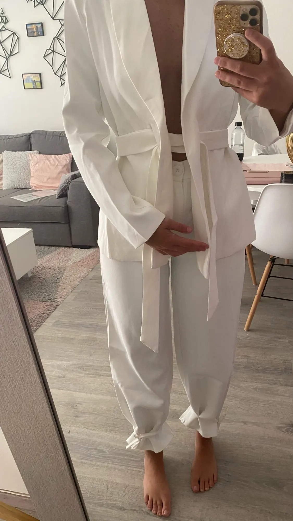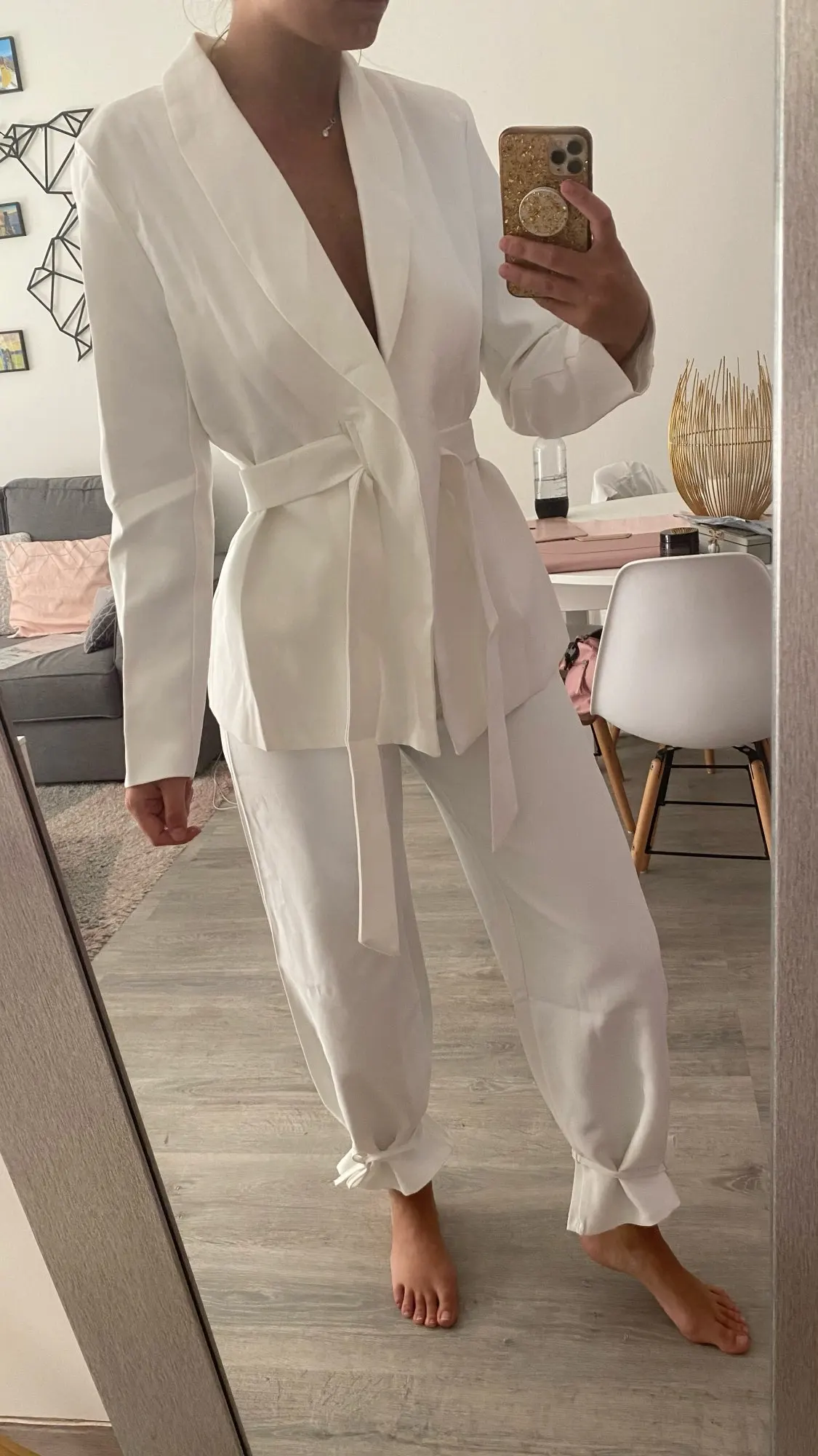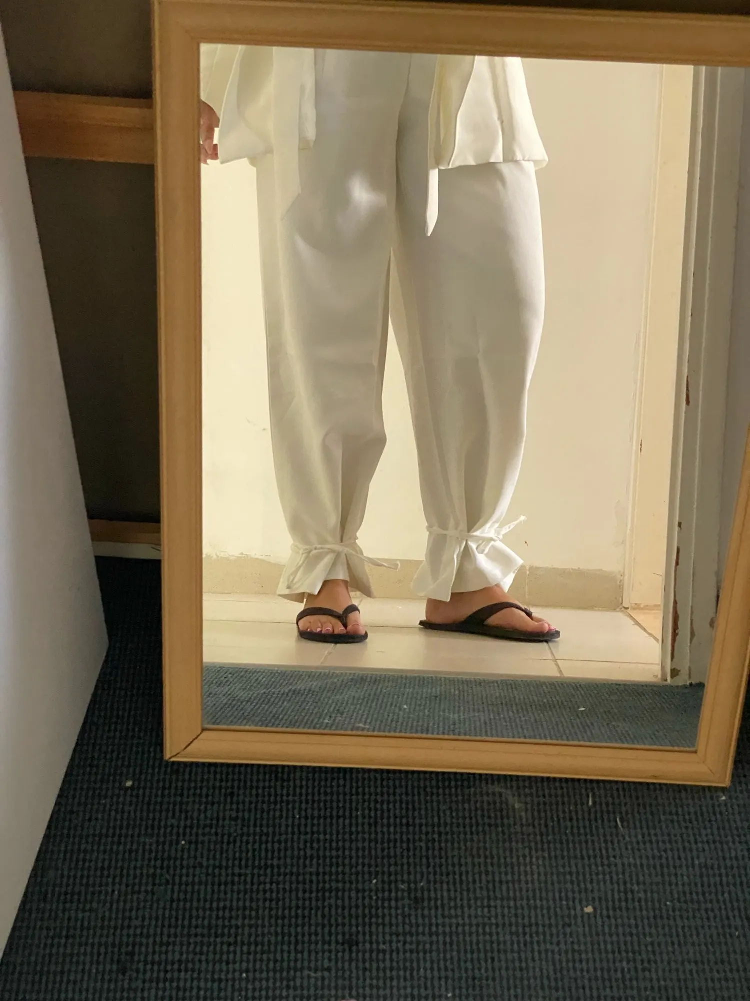 OMG! A minute of silence for this set! Impeccable quality, wonderful fabric, super-bodied, is not transparent. Think was buying more loved sea-malls! Super recommend! Already want other parts! Comes with cords and you can use the's pants two ways: loose or tied. Loved