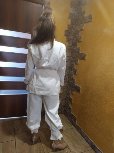 I was waiting for this suit! Weave dense, does not shine through, for the summer it will be hot, but for the autumn itself. The size approached perfectly, only a little long pants and sleeves. My height is 164, weight is 67, the size is worn 46/m. I ordered XL in general very satisfied.
