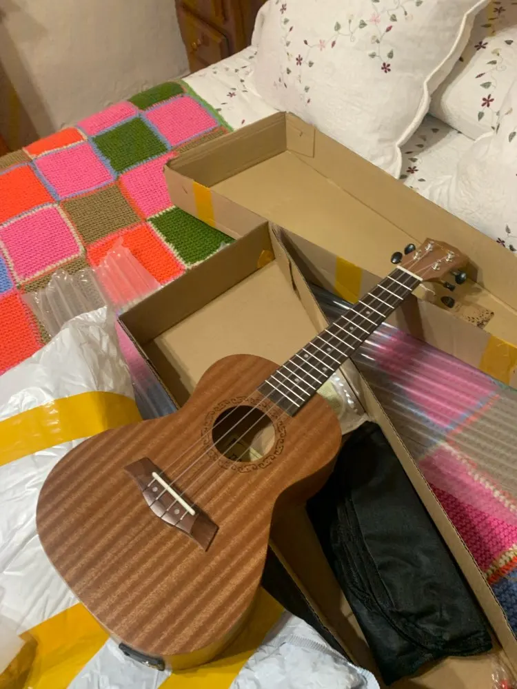 Excellent ukulele! Came the whole set of guitar with pickup, cover, two mediators, spare strings and strap. Delivery month, fully tracked. Because of the force majeure circumstances for a very long time stuck on the border, and in Russia delivered literally in 2 days. In general, it sounds very high quality. Unfortunately, here you can not attach the video, but believe me on the word, everything is fine: keeps the line, the acoustics are good, the pegs are strong. This ukulele with "top Salt".