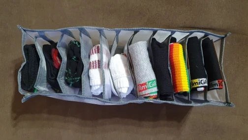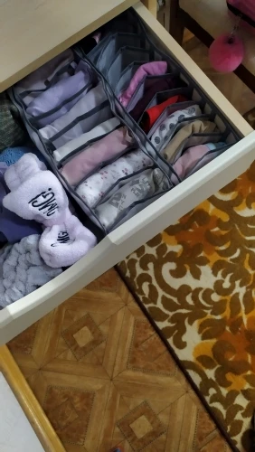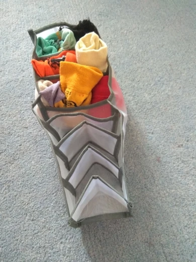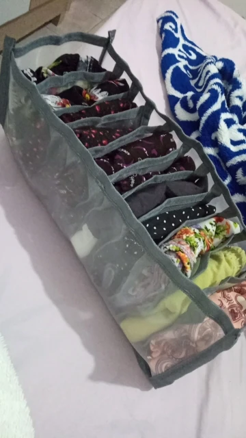 3 Color Underwear Bra Organizer Storage Box Drawer. It Can Be Used As  A Closet Organizer Box for Underwear, Scarfs, Socks, Bra.  Features: 1-  Fine Fabrics: The closet storage organizer set features high-quality fabrics, fine mesh, fine workmanship, smooth stitching, which is durable. 2- Practical in Use: The set features 3 kinds of closet storage organizers, which are perfect for all daily underwear, and the set can be washed without odor. 3- Fine Appearance: The closet storage organizer set features a fine appearance to be practical in use. 4- Upgraded Set: The inner grid is heightened and widened, and the capacity is upgraded, the three-dimensional structure of the set is straight, and it can be taken independently without deformation. 5- Wide Application: The set features the storage compartments, which can be used for underwear, socks storage, and the set is clean and tidy. Specifications: 1- Material: nylon 2- Standards: 6 grids, 7 grids, 11 grids 3- Sizes: as shown in the picture 4- Capacity: 5- 6 grid for bra storage: 6 bras can be stored, everyday cups can be put in 6- 7 grid for panties storage: 14 panties can be stored, the inner grid is increased to increase the capacity 7- 11 grid for socks storage: 22 pairs of socks can be stored, winter socks can also be placed 8- Uses: underwear, socks storage Package Includes: 1 * Closet Storage Organizer Set
