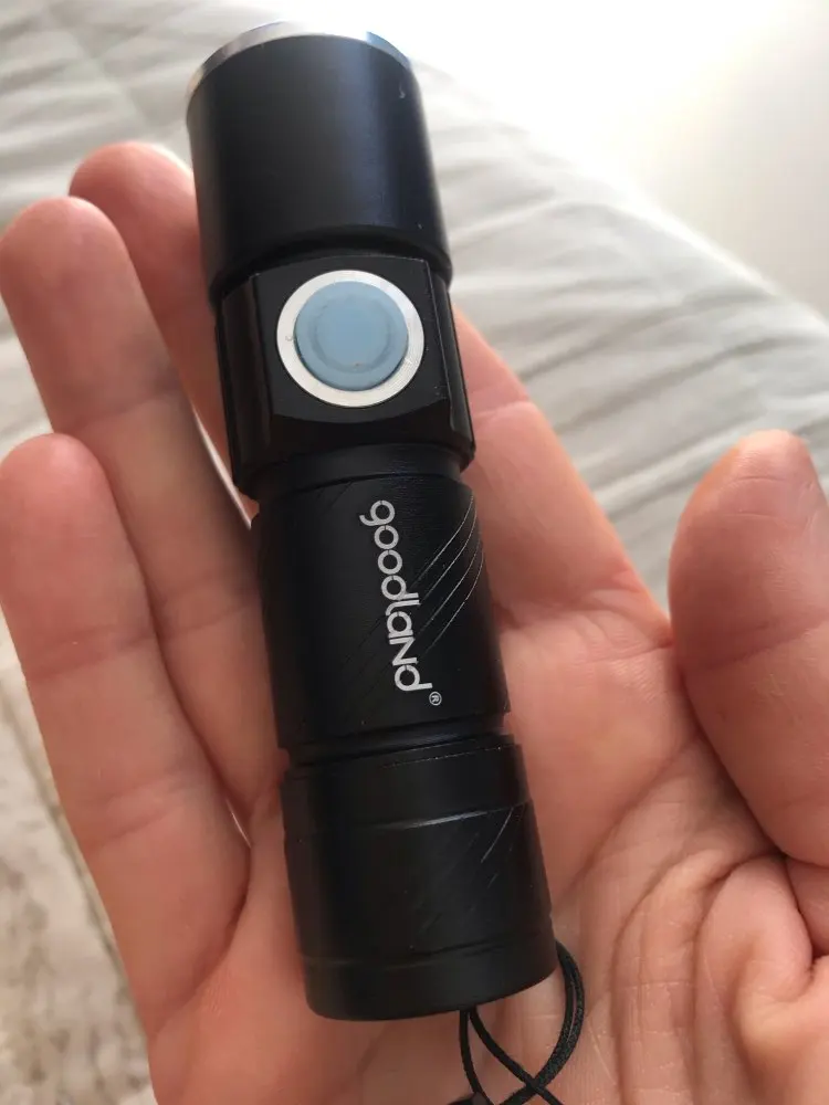 I want to immediately thank the store for the flashlight. Now about the flashlight itself, it's cool! Conveniently lies in the hand, weighs a little, charges from USB. 3 Operating modes. She took for evening walks with a dog. Especially the flashlight is necessary in winter, when on a walk we can lose shoes. The order was 09.04, received in Moscow 21.05. Delivery chose free because there is no urgent need.