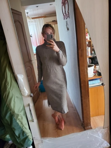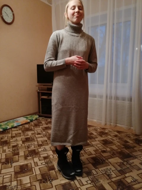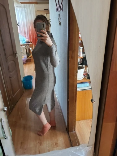 Very pleasantly surprised. At 46 the size of the dress is not quite oversize, but it sits freely. The fabric is soft, pleasant, after washing a little stretched cracks on the sleeves, otherwise the first wash the dress burned well, without other visible deformation. The seams look neat.