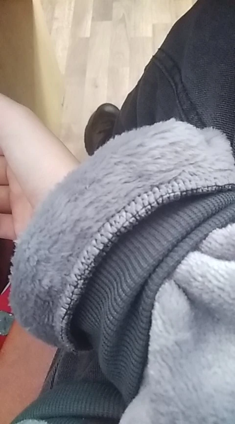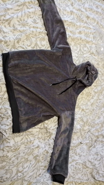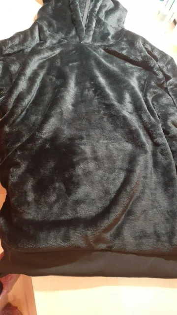 Hoodie came really fast. Material is super soft, like a , stitching is perfect (pic). The inside is the same material as the outside, only the hairs are a little bit longer, like half a millimeter. No threads hanging out, no funny smell. Buy it, you won't regret it.