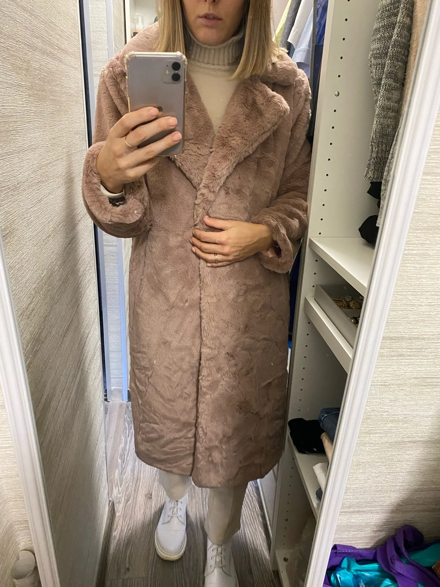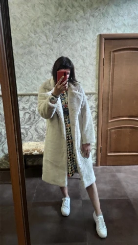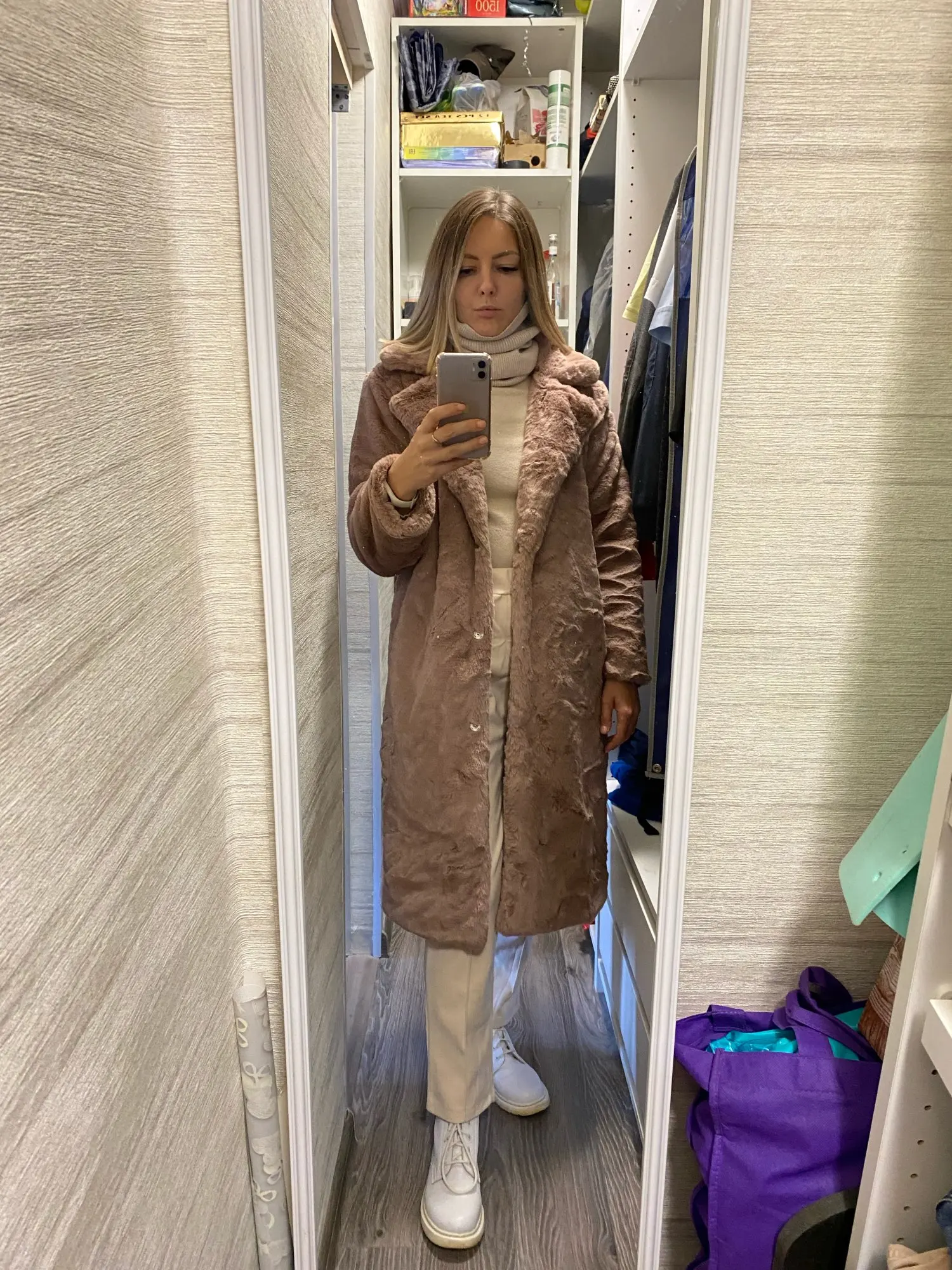Reread all the reviews, ordered for its height 170 cm size M-very worried about the length of the sleeve-my hands are long. It turned out to be fine. The width is too big, I wear 44-46 Russian size, the size m in width is closer to 50. But you can change the buttons and fit under yourself. Fur is incredible, soft, gentle, looks like a rabbit. The fur coat is thin of course, with a warm jacket at least in-5 to walk, but for such a price fire! Belt by the way in the kit. The store also put a rubber band for hair as a gift.