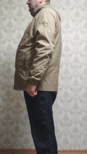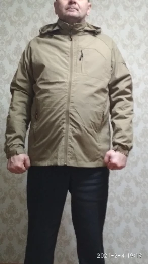 The jacket is satisfied, it reached Bryansk in 14 days, the jacket was tracked from the beginning to the end. The jacket is not long (because. I'm not tall) I ordered 4XL for myself perfectly fit, dressed on a jacket. Size measured shoulders 54 chest girth 120 and height 167. With the store did not communicate (without need), the jacket norms tight matte material, I tried a couple drops of Vada drip, drops roll down, do not absorb and do not delay on the material, I don't know how.