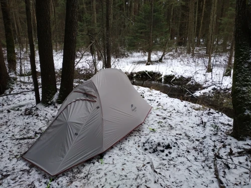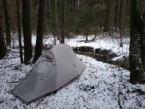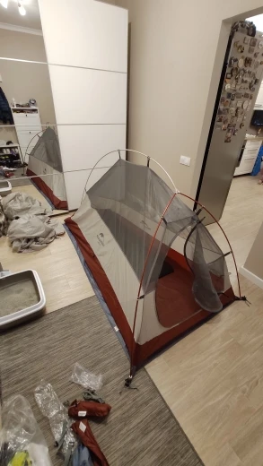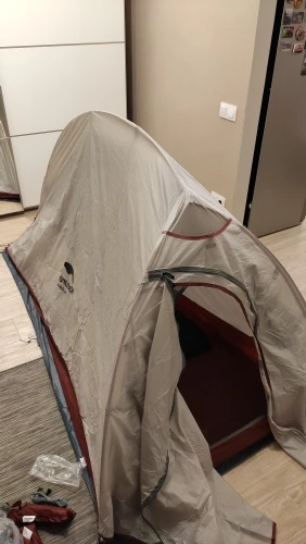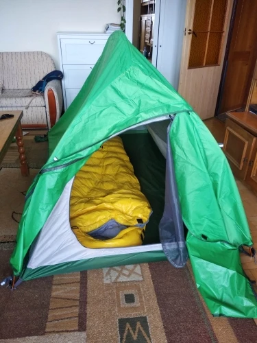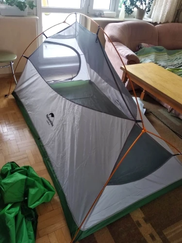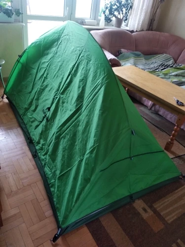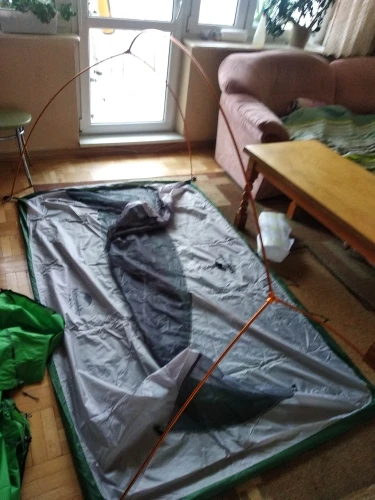 I bought a green without a silicone shell (210t), on two just right, the prebannik is really small. But in general, the tent costs its money (bought for 404 zlotys, it's about 105 bucks). Futprint was sent separately from the tent and it went a few days to the tent itself. There was a parcel just under a month in Warsaw. The arcs are golden, although they could have been less at the foot to make for greater convenience a different color, but it is not so important. The material looks pretty solid, the smell is unpleasant, but it will fade. It's not essential either. Good tent also for single camping. Interesting couplings in the arcs, never seen such, funny (in the photo). Recommend