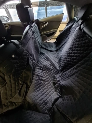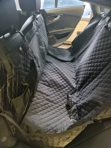 UPGRADE MESH WINDOW - Pet seat cover with mesh visual window means you can check the pet's behaviour and its mood at any time, protect your dog from uneasy feelings. Moreover, the mesh window of the dog car seat cover allows the airflow to the back seat, keeping a cool environment for your lovely pet. UNIQUE ENVIRONMENTALLY FRIENDLY ANTI-SLIP PARTICLES - Different from other pet seat covers for the back seat, this pet car seat cover uses unique plastic spraying anti-slip particles rather than a normal plastic skid net. It's safe even if your pet ingests it by accident. Moreover, the anti-slip particles won't melt like plastic skid net in hot weather. DURABLE & 100% WATERPROOF MATERIALS - It is made by 600D oxford with TPU coating, and use hot pressing tech which does not need needle stitching, all this ensures 100% waterproofing. No worrying about the urine stain, mud, hair etc. Moreover, the headrest cover and side flaps can protect your car from scratch. After outdoor camping, the dog backs to the back seat with dew and dust, you don't have to clean the car. Just wash the pet seat cover by machine, so easy! COMPATIBILITY & EASY TO INSTALL, CLEAN - Just need several minutes to install. An excellent size of 143cm Wide x 152 Length (larger than other brands) will perfectly protect your car from scratches or mud. Adjustable straps with plastic buckle provide max adjustability for most sizes of cars. Plastic anchors help you fix the dog seat cover to the car firmly.