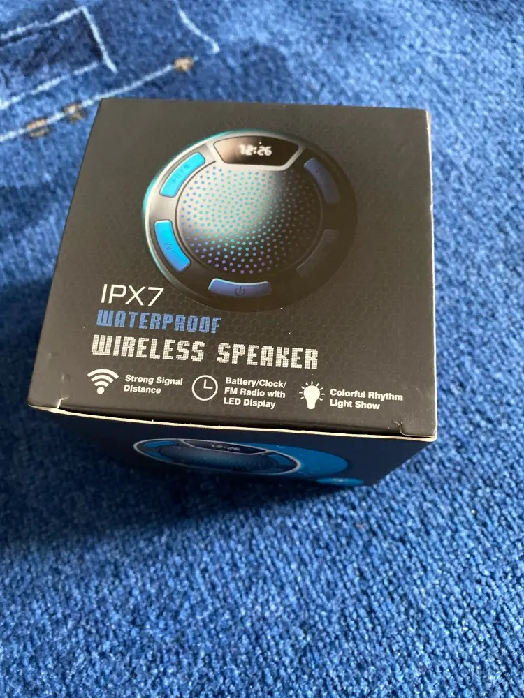 Bluetooth speaker that is waterproof which means it makes a great shower speaker. The wireless and portable speaker comes with a LED display, fm radio as well as a strong suction for the shower walls. It is easy to use and provides a good quality of sounds when playing my favorite songs. It is also small in size and looks well built.