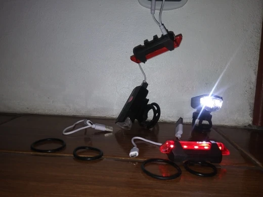 The flashlight is quality, powerful enough, there are several lighting options for both the front and rear phonory. The kit includes two USB cables for recharging. When charging, you can see when the flashlight is fully charged, when there is no. Fasteners to the bike are reliable and comfortable, the son is delighted. To the store Thank you, delivery 2 weeks.