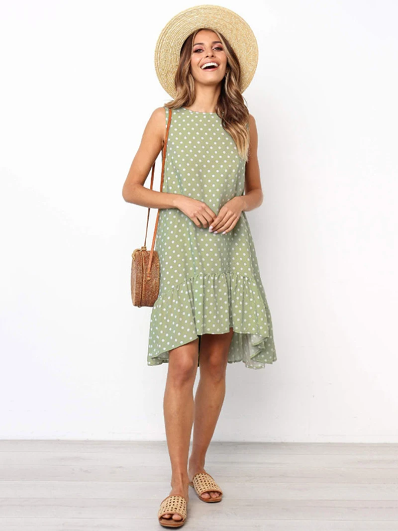 Women's Amazing O-Neck Ruffles Dot Printed Sleeveless Dress