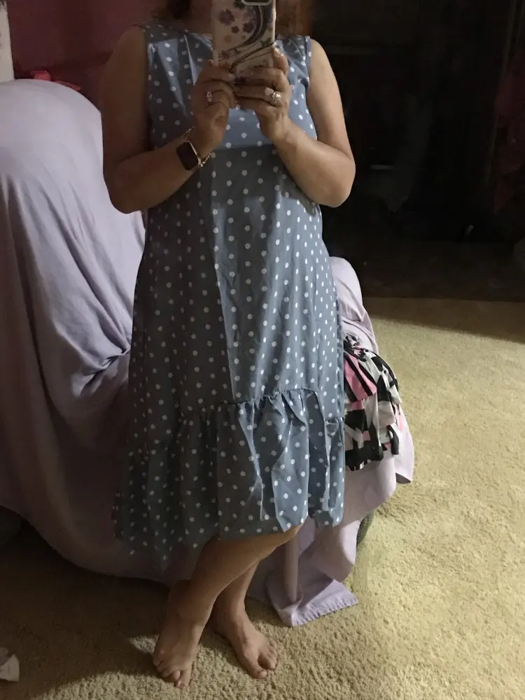Women's Amazing O-Neck Ruffles Dot Printed Sleeveless Dress-Model5