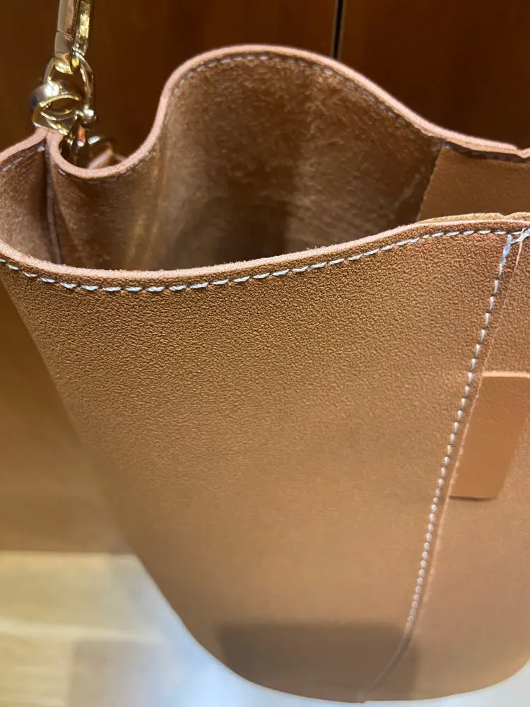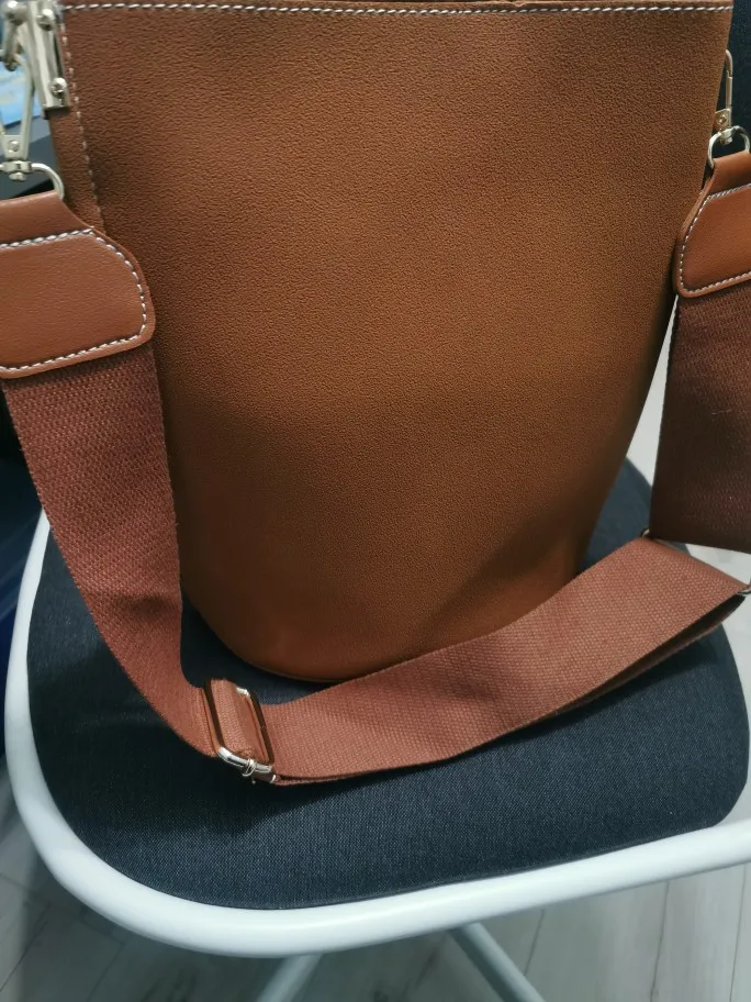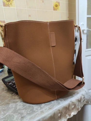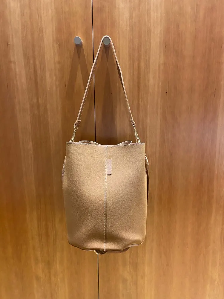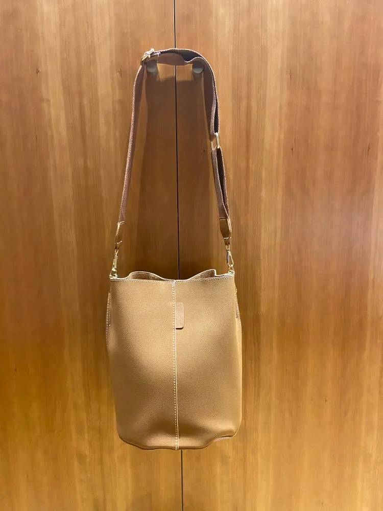 New Stylish Bucket Bag With Wide straps and gold detailing. Easy to carry and a versatile piece.