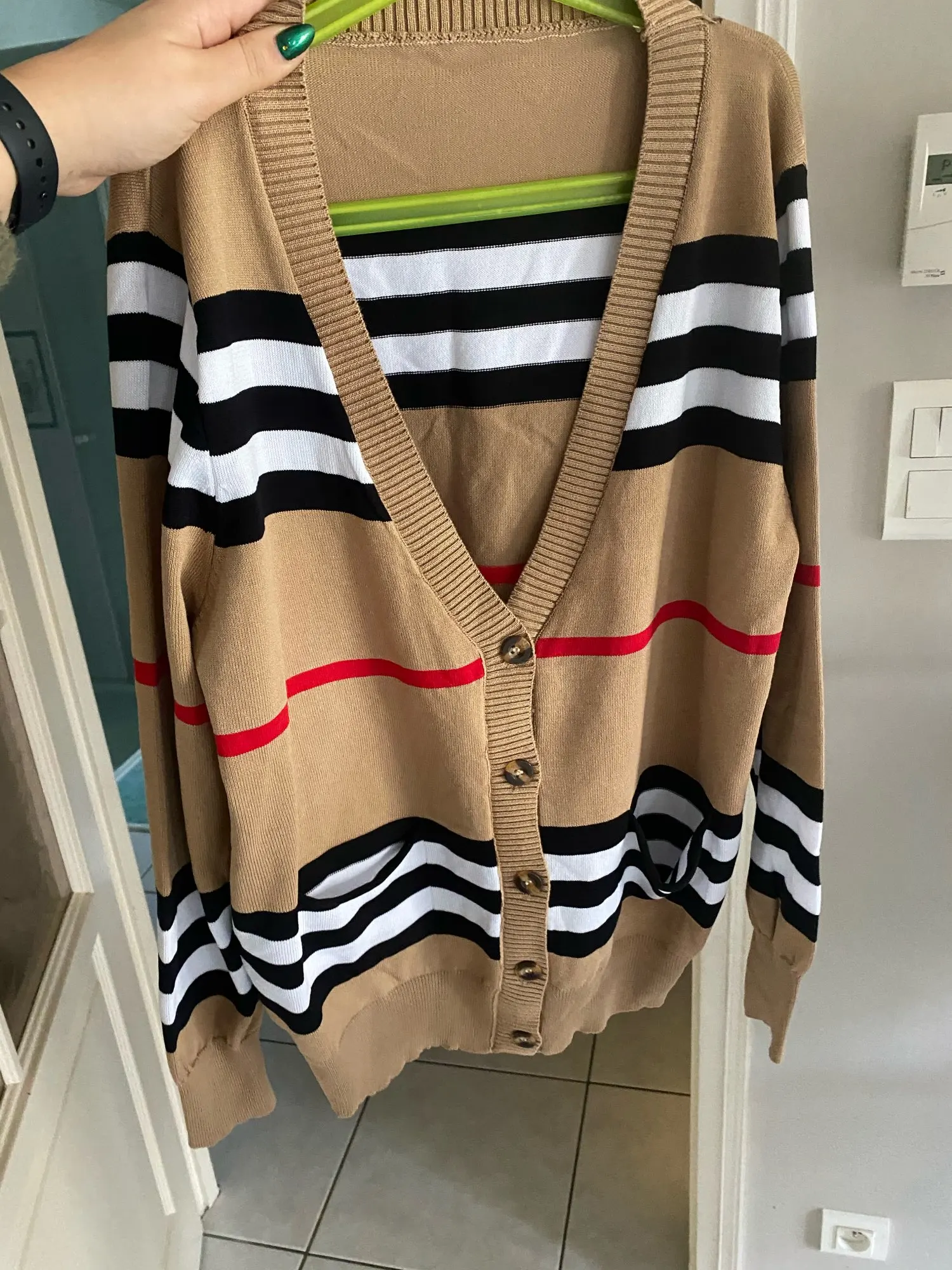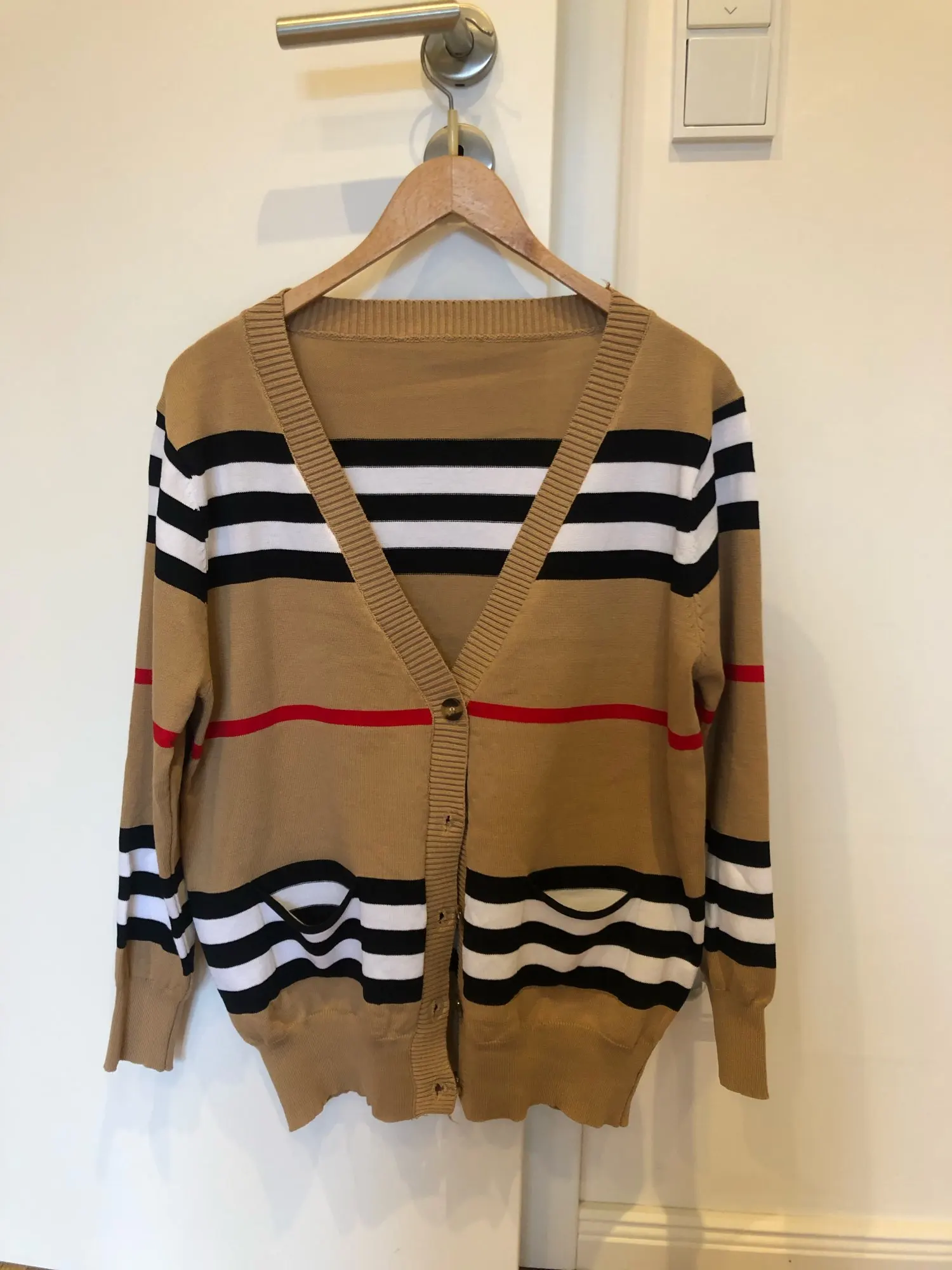 Women's Cashmere Sweater Mid-length Knitted Jacket V-neck Striped Sweater