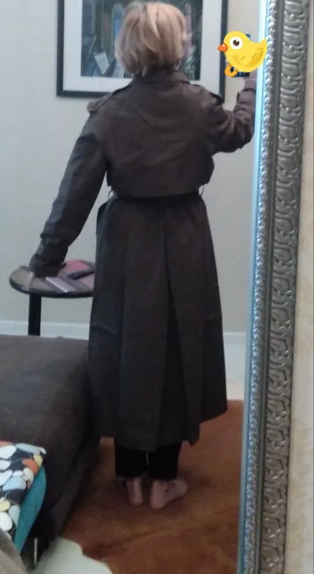 Trench is very pleased, its money is right, the quality is at altitude, the fabric is very pleasant to the touch natural, dense, HB. L clear 48. Warm, solid, interesting detail behind the guard, who does not have an outstanding fifth point, very much adds. Recommend!!