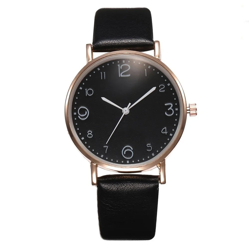 Women's Classic Round Dial Leather Band Wristwatch Model Black