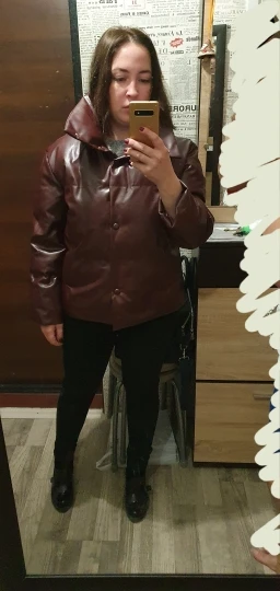 Nice jacket. Looks Noble. The color is milky, pleasant. On the parameters OG 89, OT 66, OB 93, height 171 cm, took S. I do not like a strong oversize. She sat down freely, because The style itself is free. Filler inside is enough, not a thin jacket, distributed evenly. Sleeves norms, but still a little and would be short)