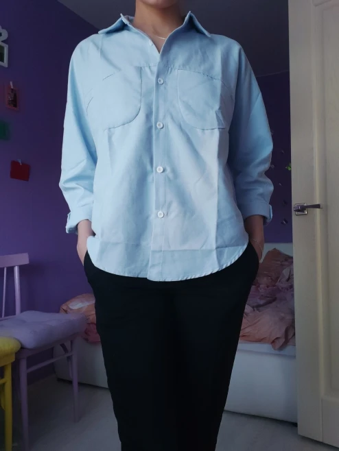 Shirt of super-cool quality. At its height of 162 cm and parameters 88-68-90 ordered in size m. It looks like an oversize. The material is cool, the lines are even, the order is happy!