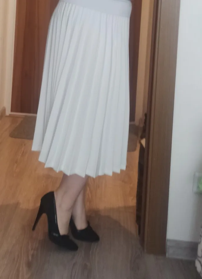 I liked the skirt. The fabric is similar to the fabric of the police uniform (by color and gravity). Pleating is smooth, uniform. My height is 165 cm. If the skirt is correctly placed at the waist, then along the length it closes the knee completely. My from 80 cm. Nothing presses. It was about 20 days