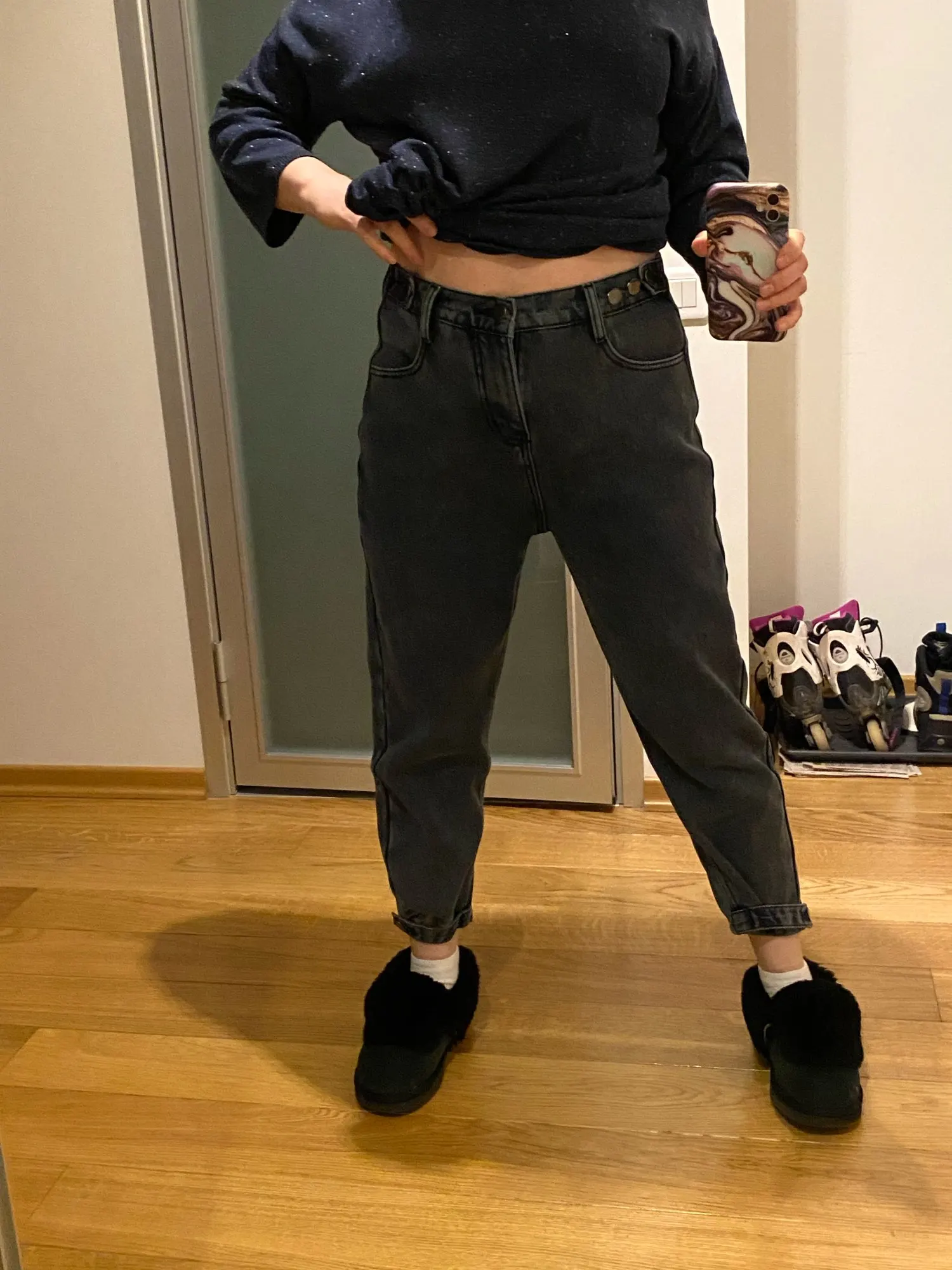 I have a height of 165, size 46. Took jeans XL. On the hips behind bolshevato. At the waist of the button, does not fall off. The length above is 10 cm. Of course, they need more tights warm and high boots. But I saw that in sneakers they walk with a bare leg. But it is for very hardened... Quality OK, delivery OK. The price is convenient.