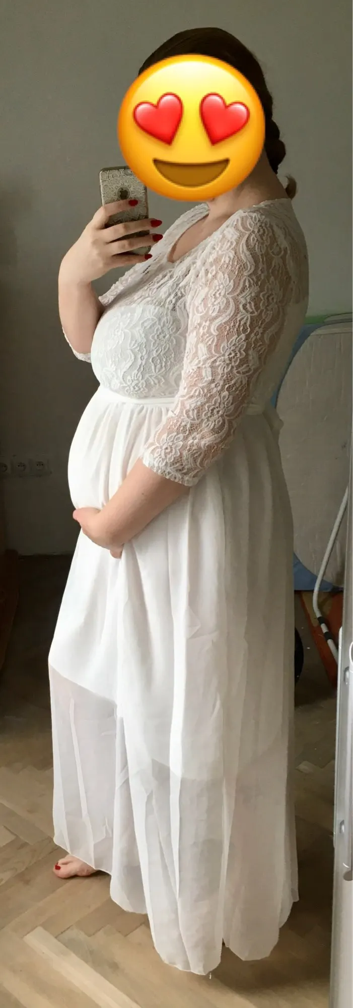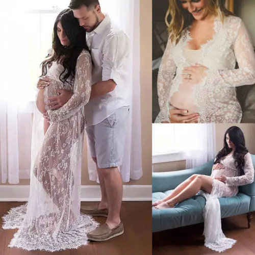 Women's Gorgeous Boat Neck Lace Maternity Dress White Model