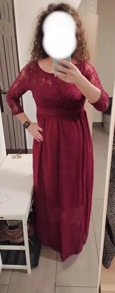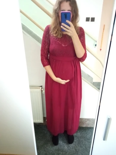 Women's Gorgeous Boat Neck Lace Maternity Dress Red Model