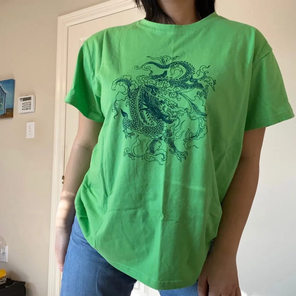 T-shirt fire, the seams are all flat, the thread does not stick out, the printing is clear, the material is dense cotton, the store sent the order day after day, it came in time specified in the delivery to the Mail, from the mail came a notification to the phone, that it's time to pick up-five stars!!
